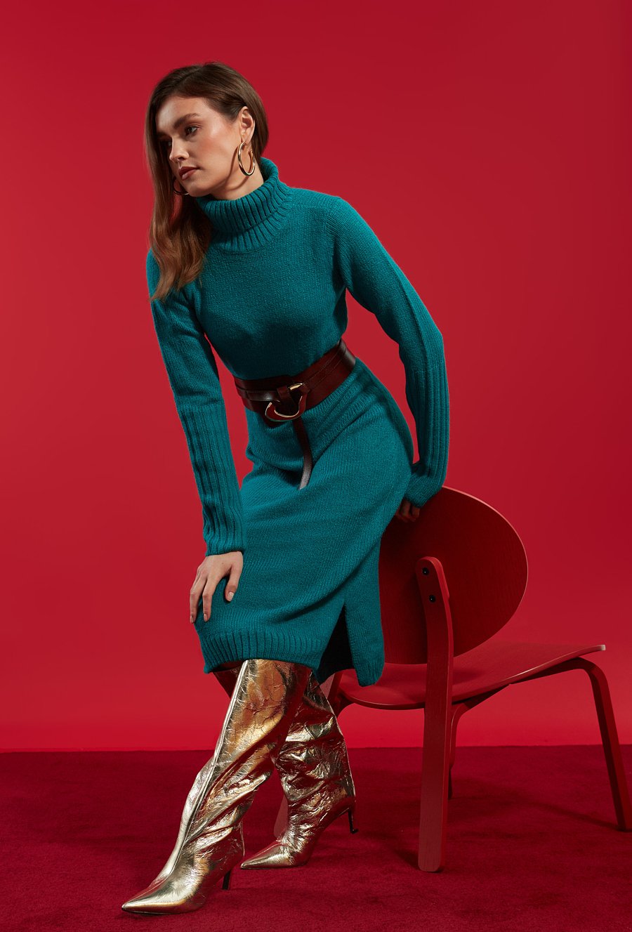 Dzianinowa sukienka z golfem
