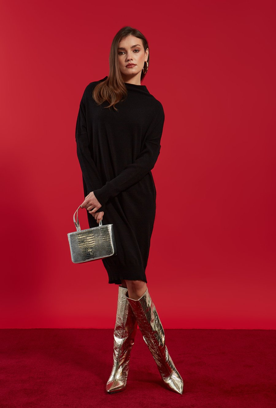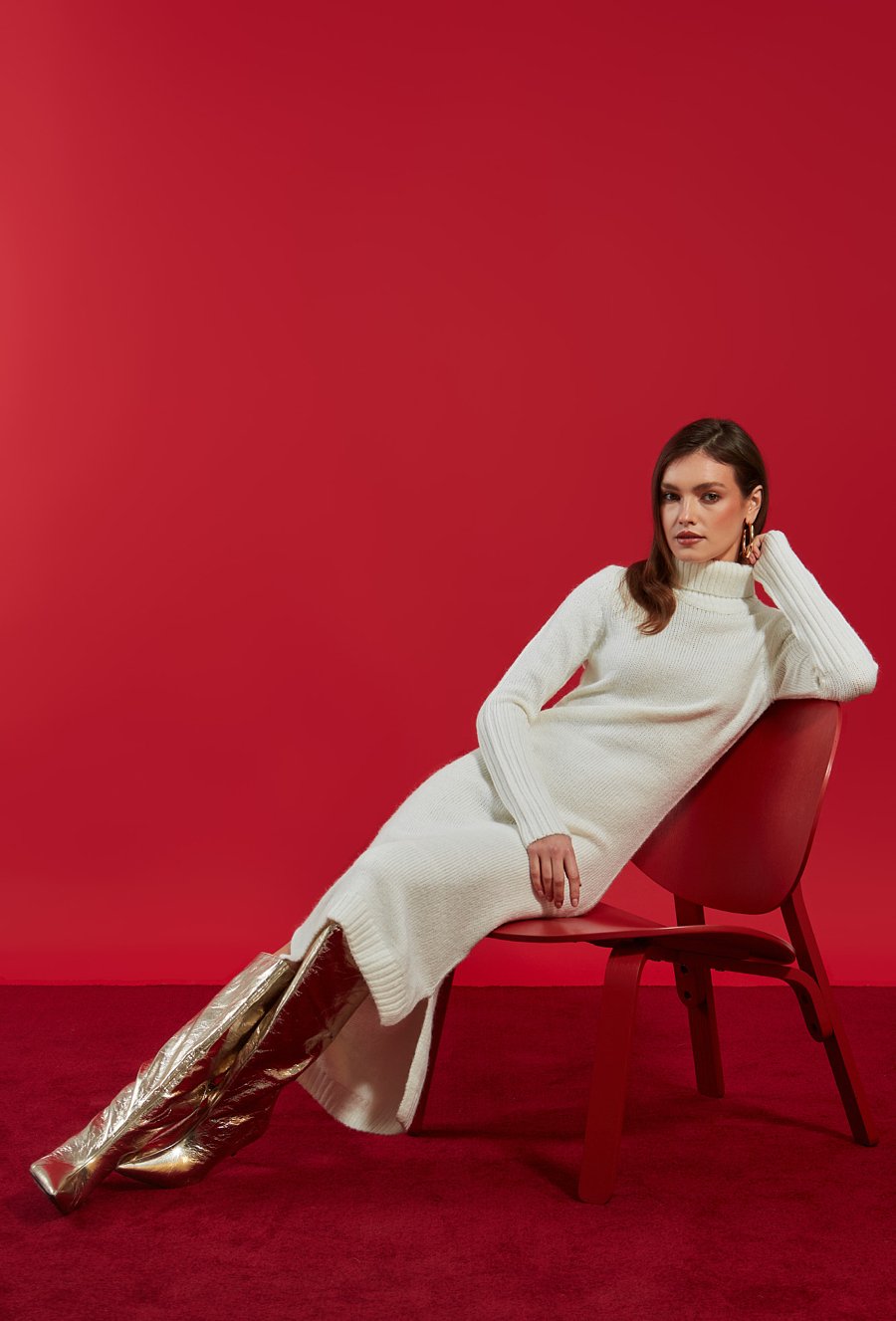 Dzianinowa sukienka z szerokim golfem