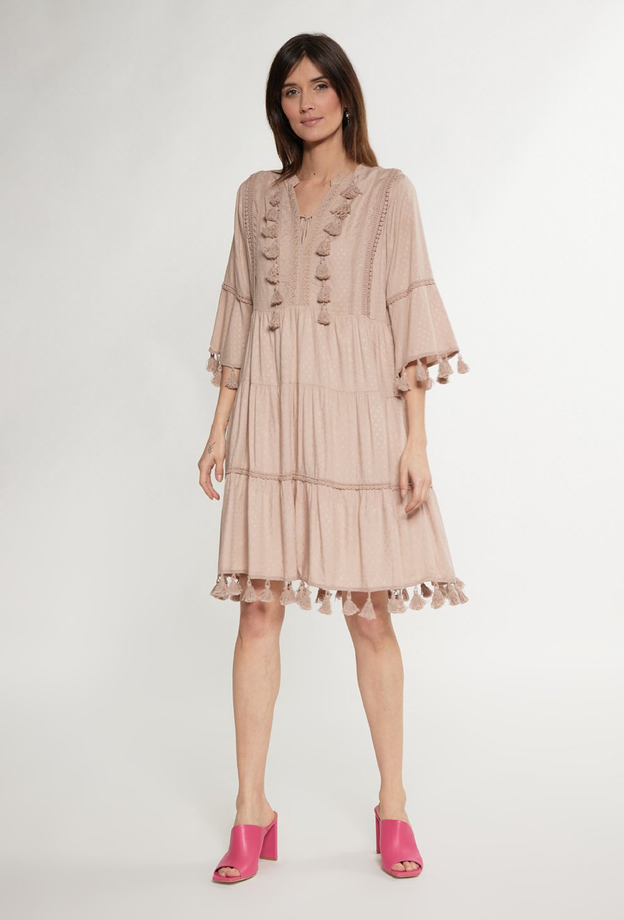 Ażurowa sukienka z paskiem