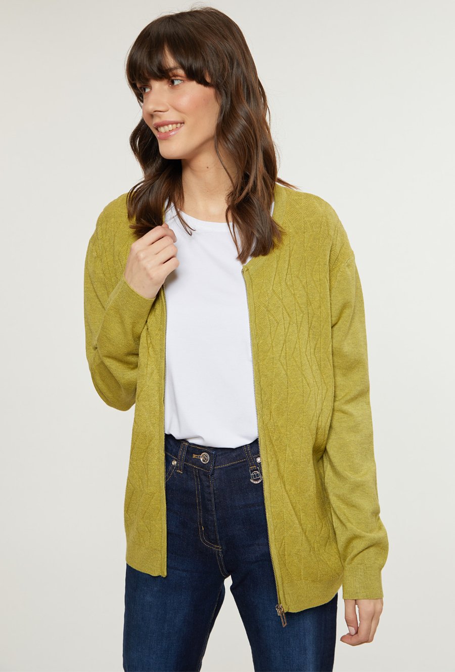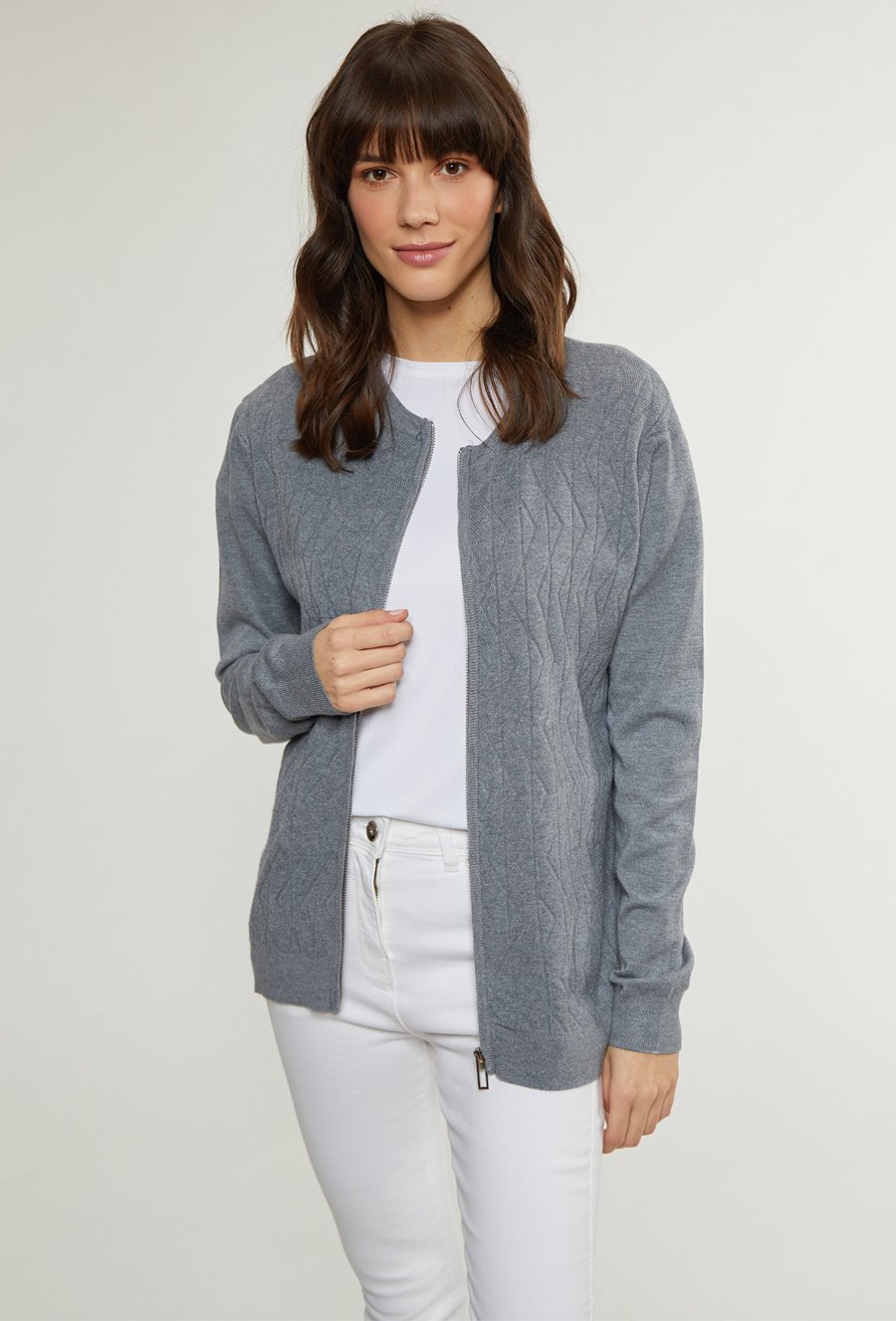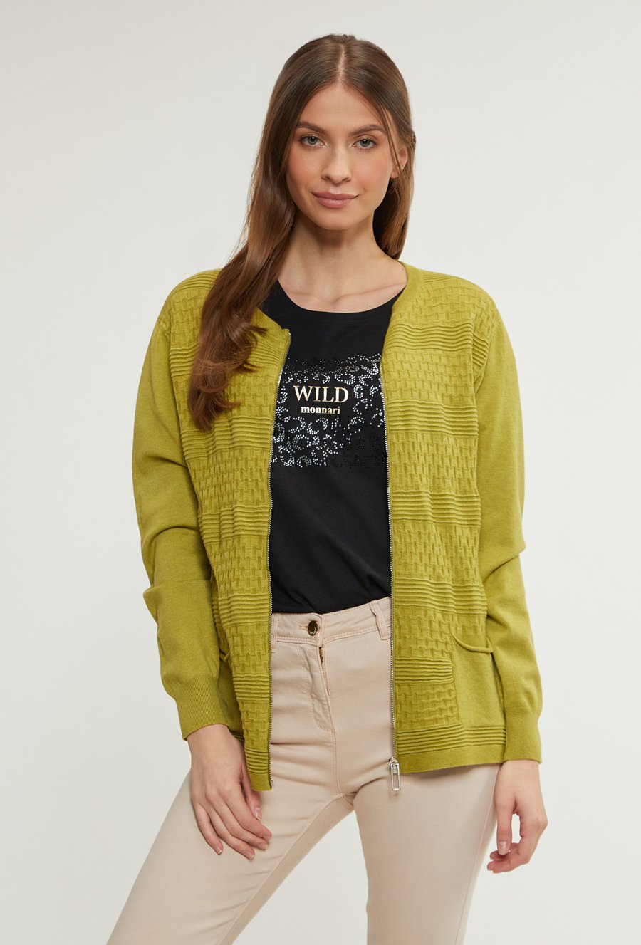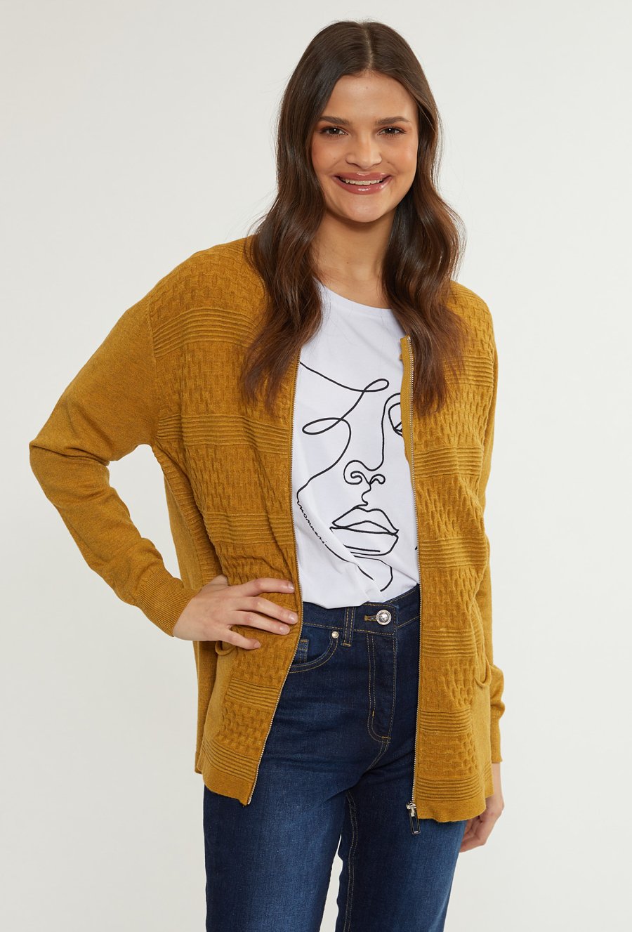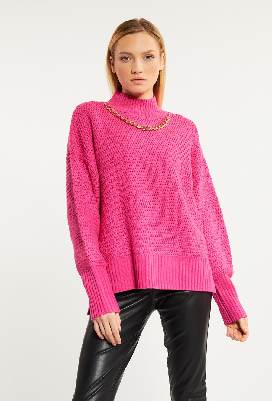 Prążkowany sweter damski z kieszeniami