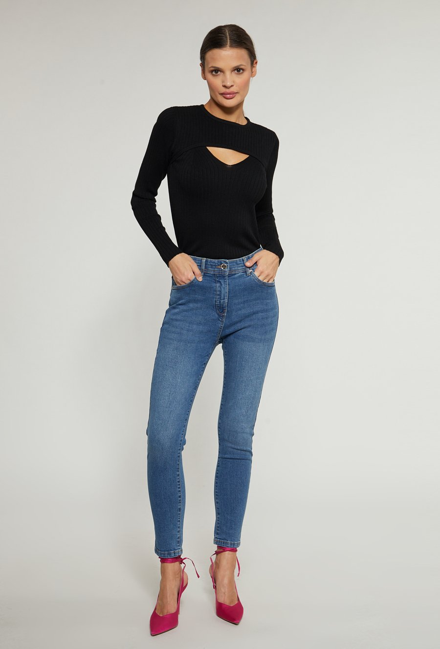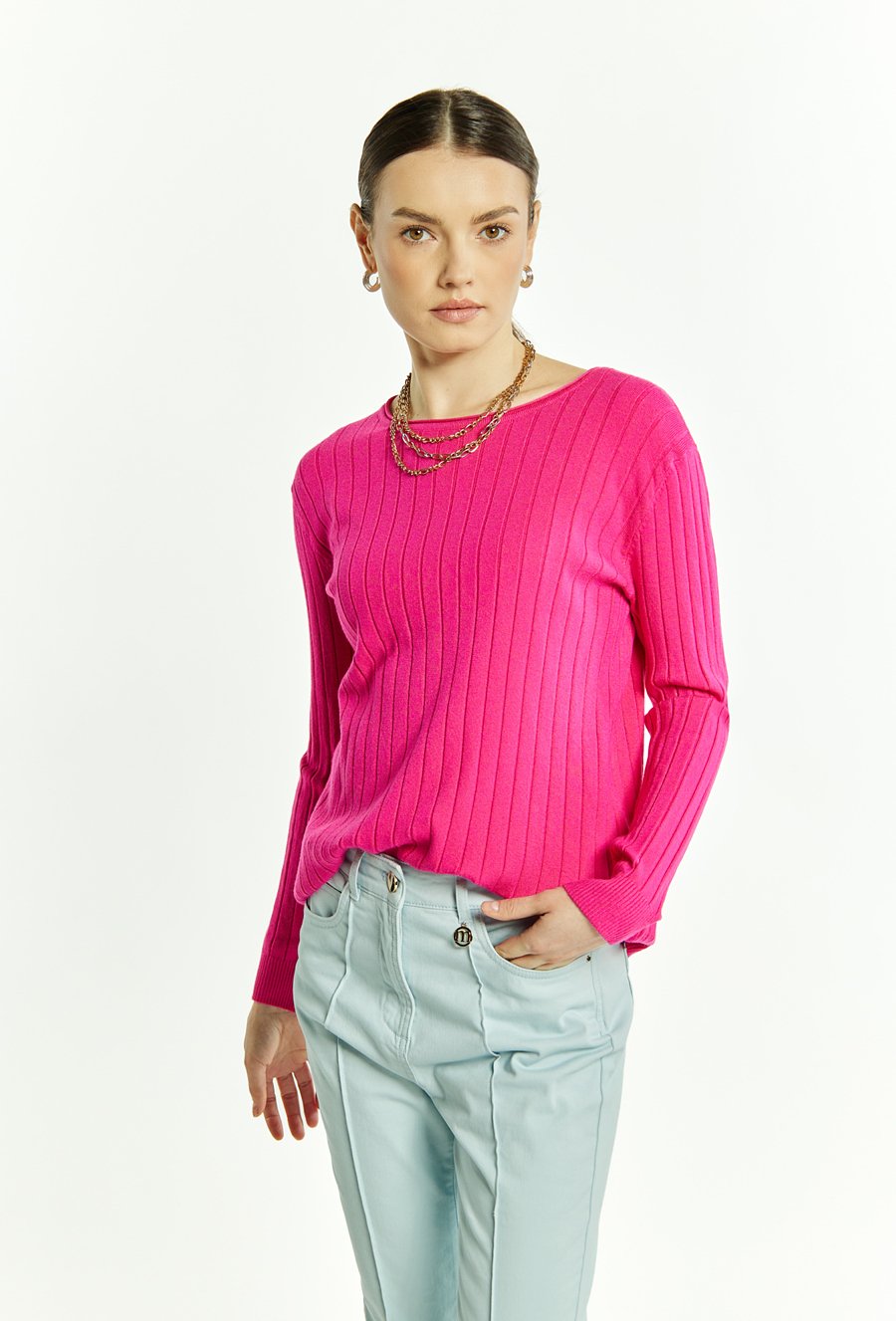 Prążkowany sweter o dopasowanym kroju