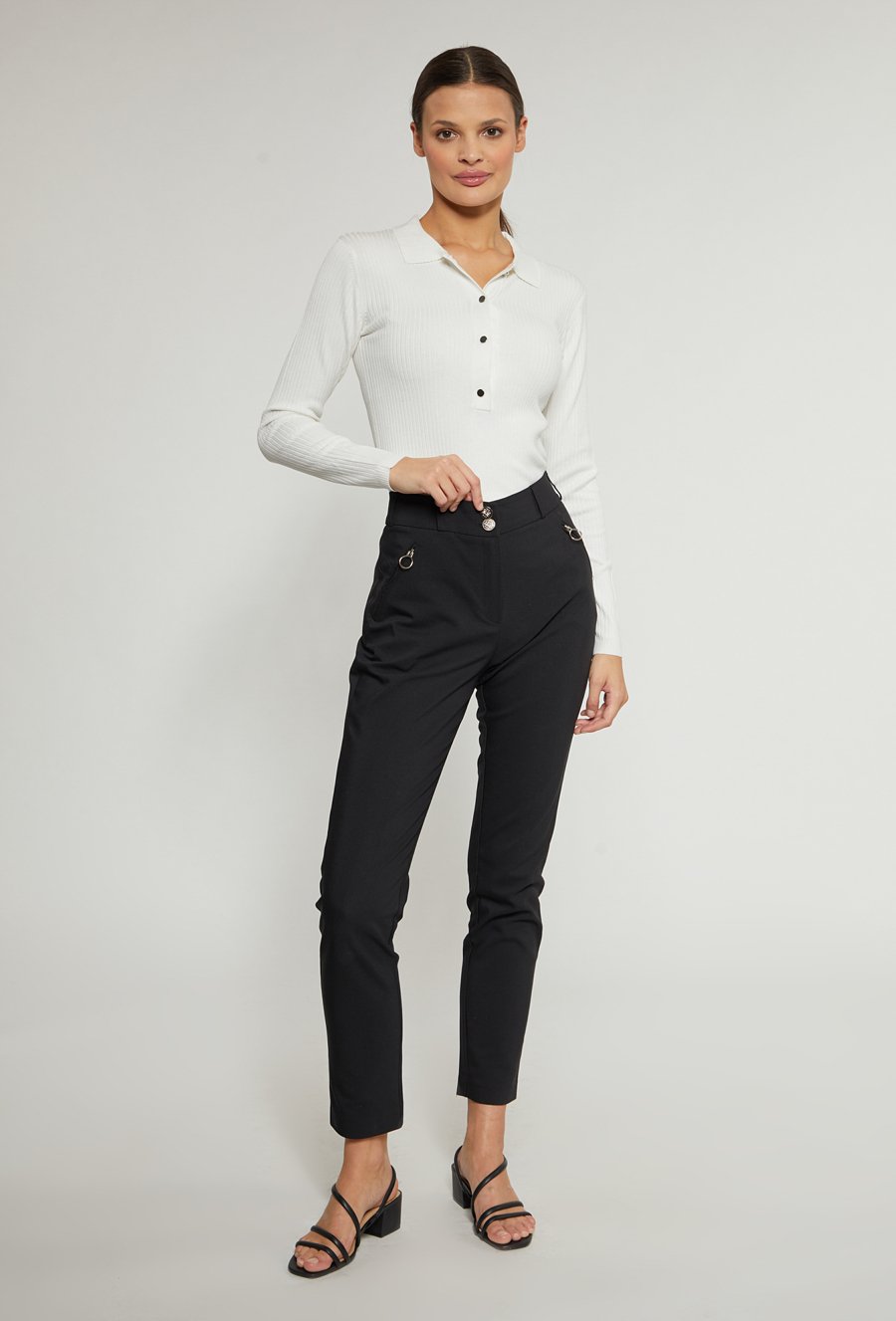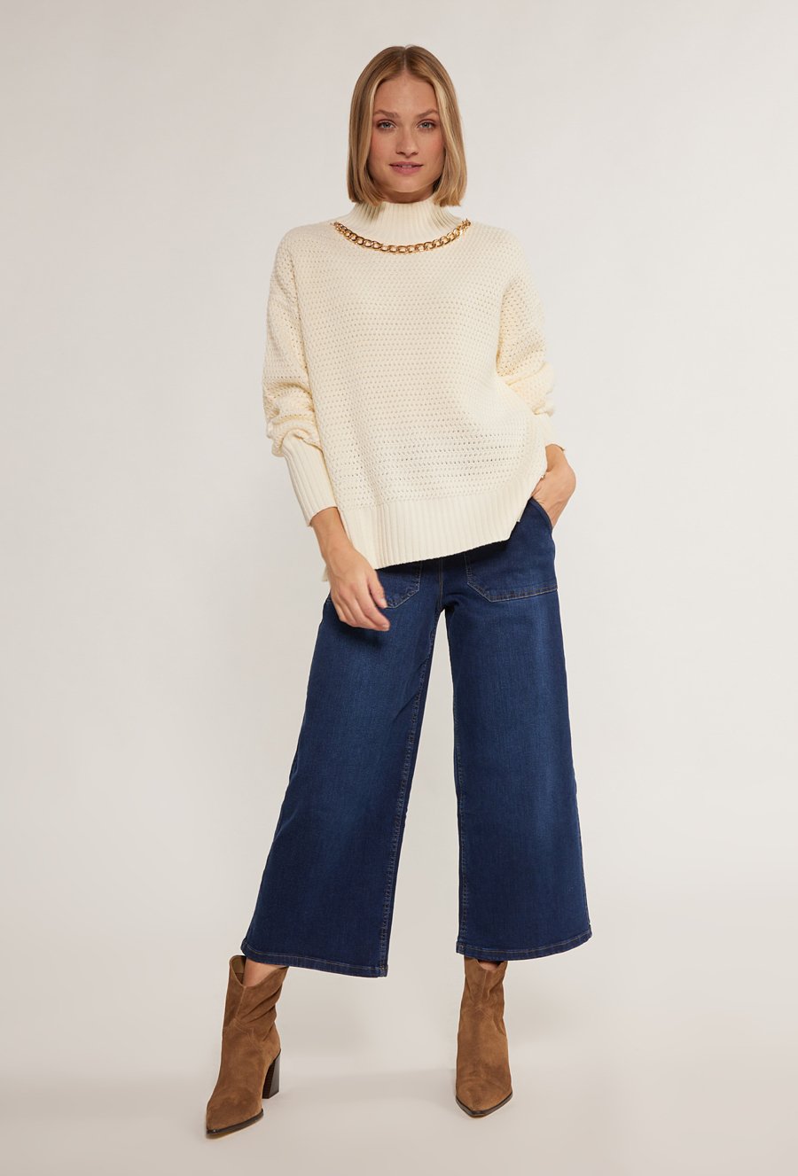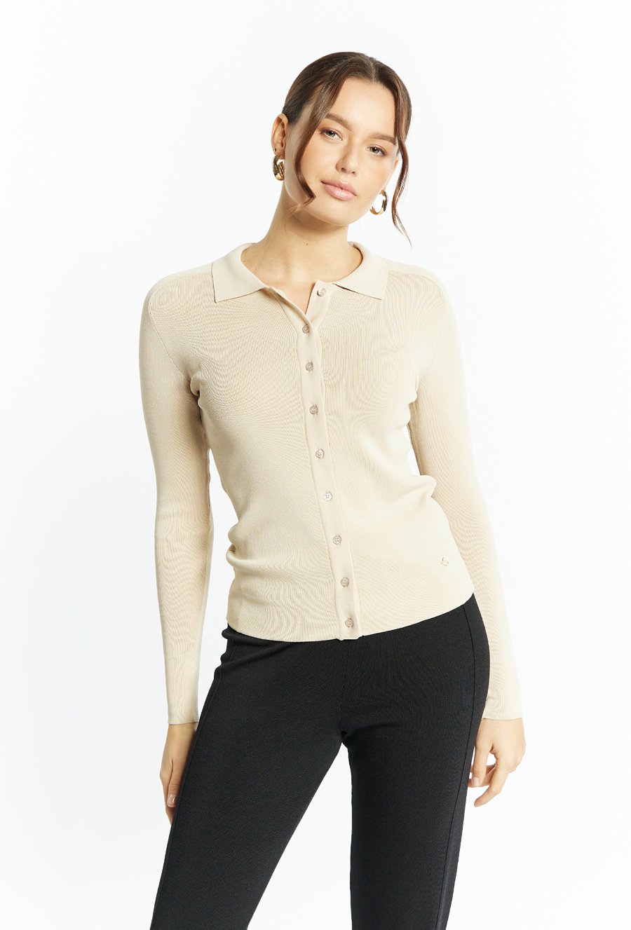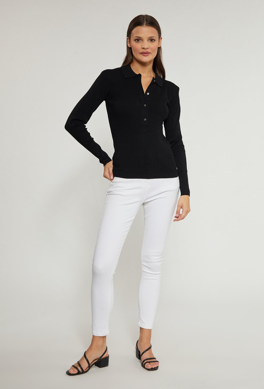 Prążkowany sweter damski z kołnierzykiem