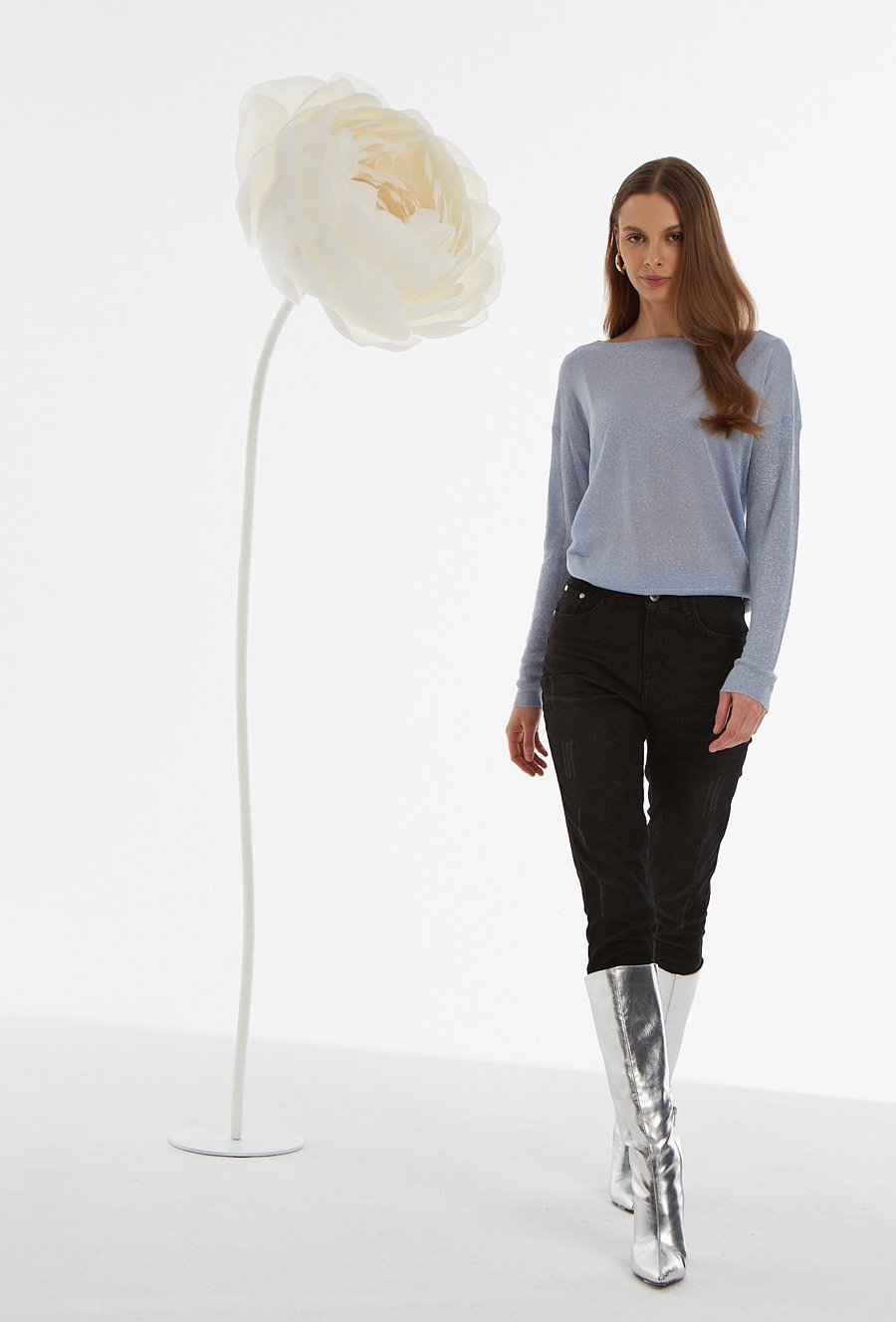 Niebieski sweter z metaliczną nicią