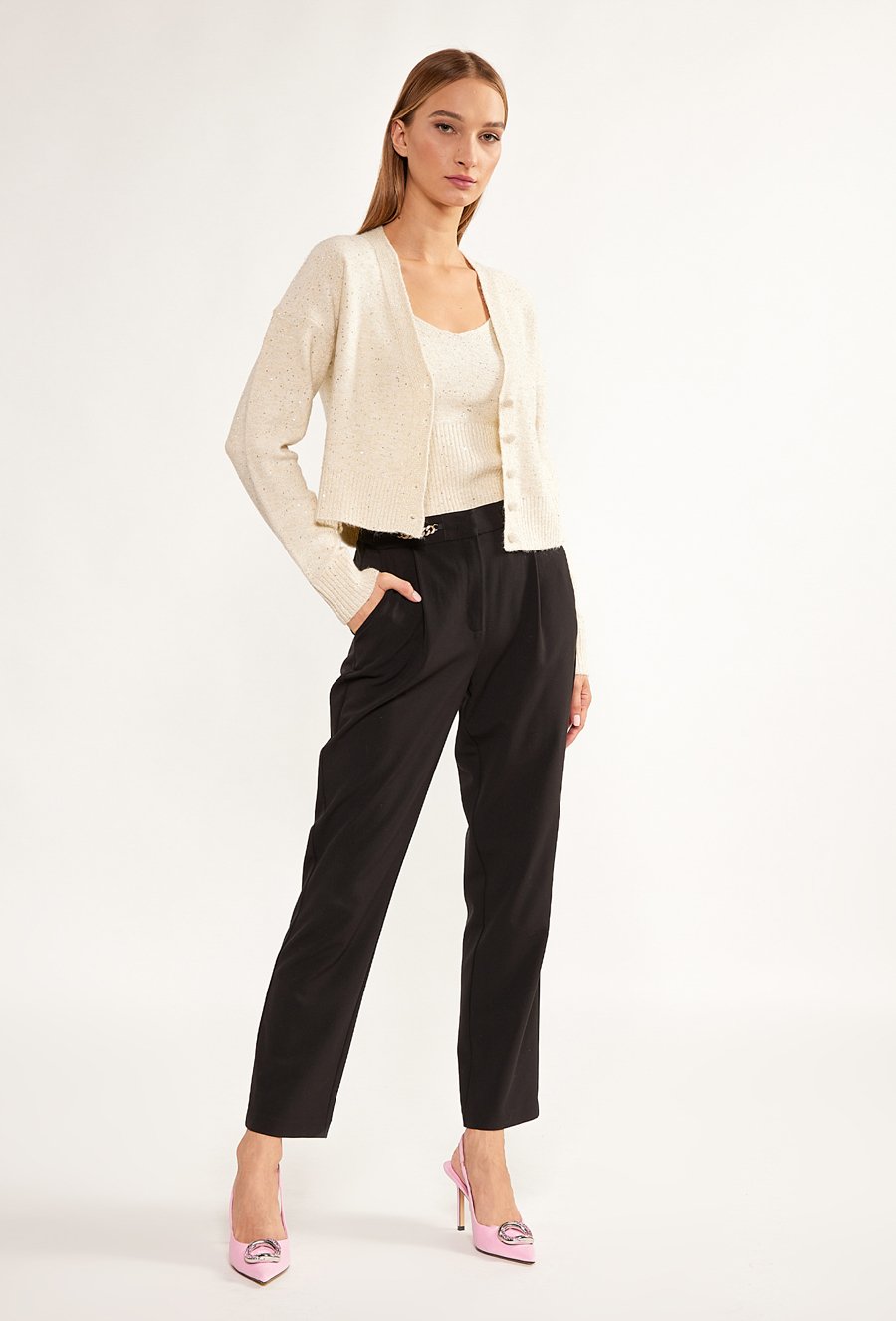 Połyskujący sweter damski
