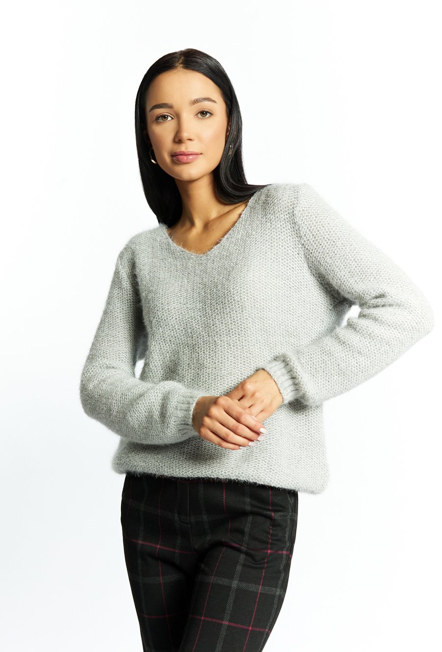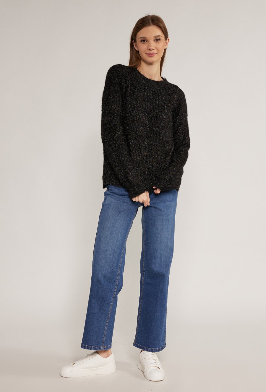 Połyskujący sweter z dodatkiem wełny