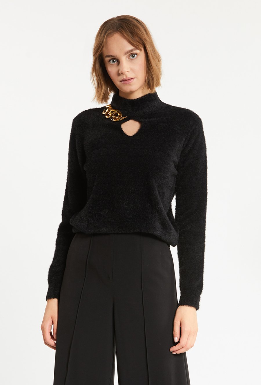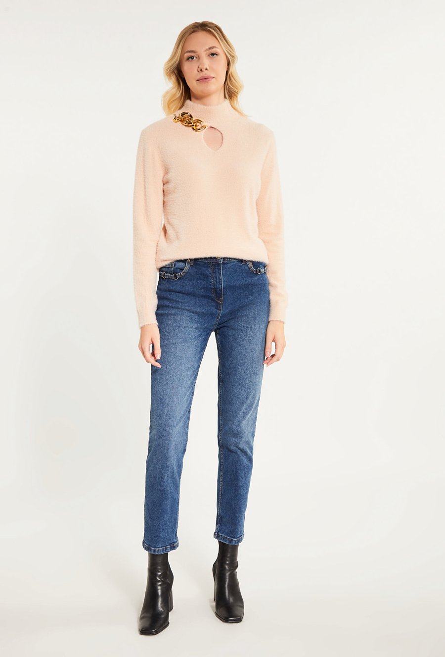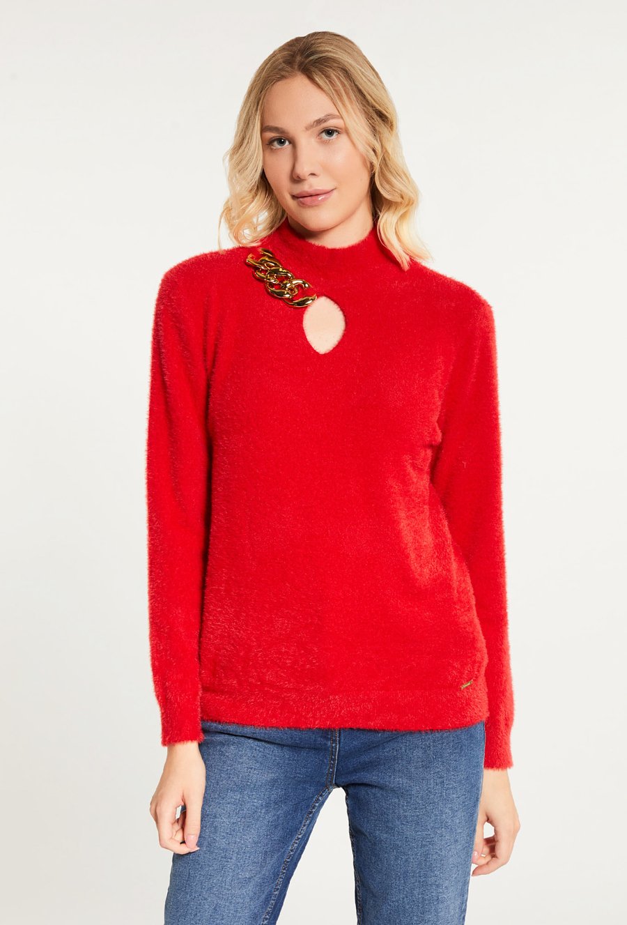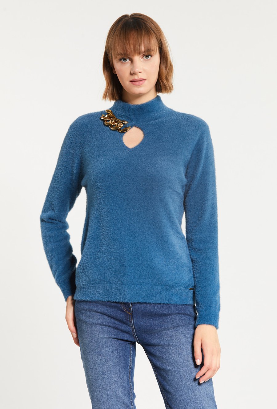 Sweter damski z biżuteryjną aplikacją