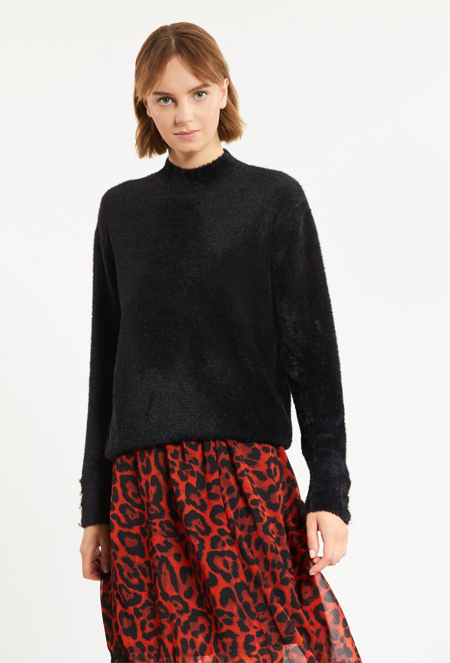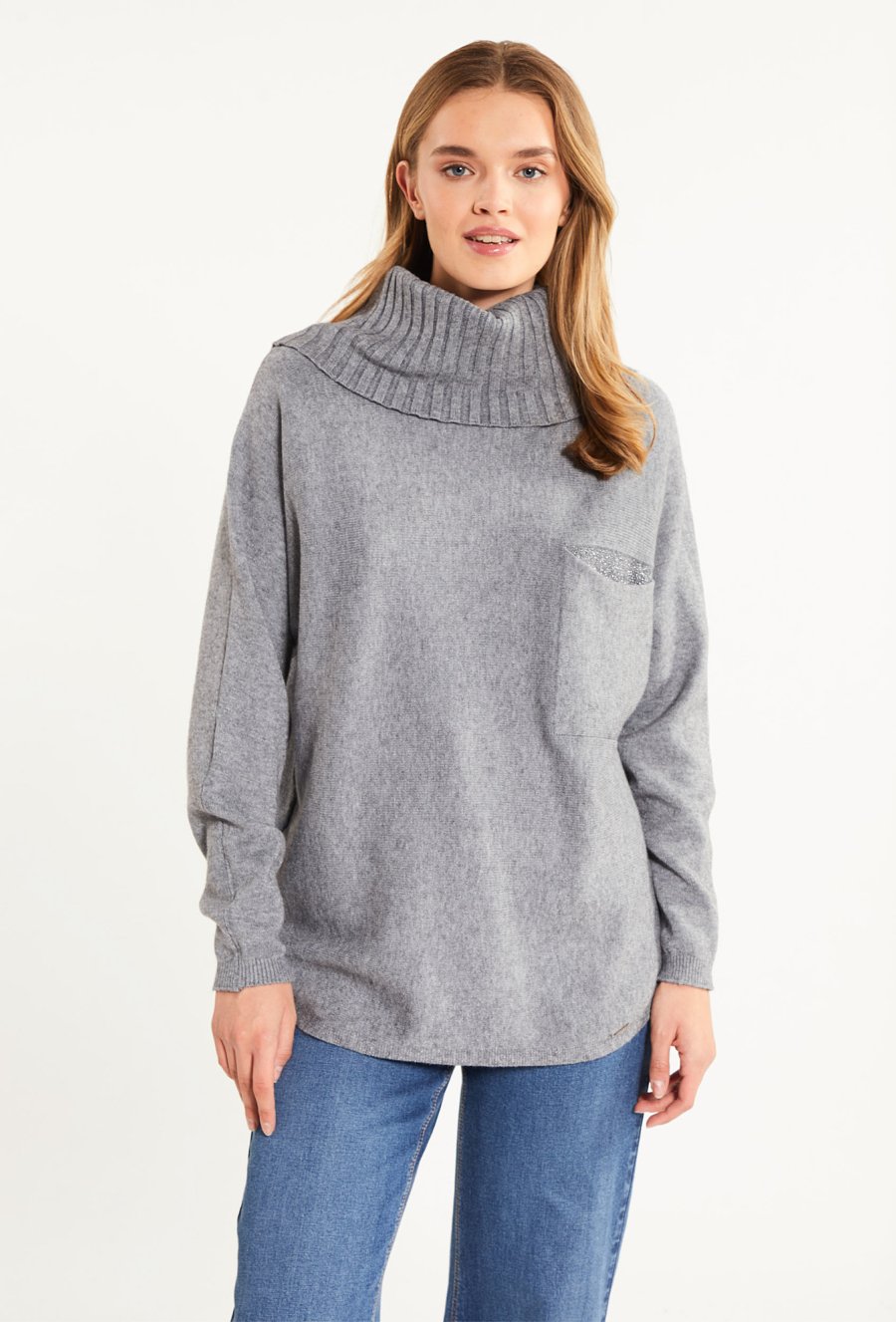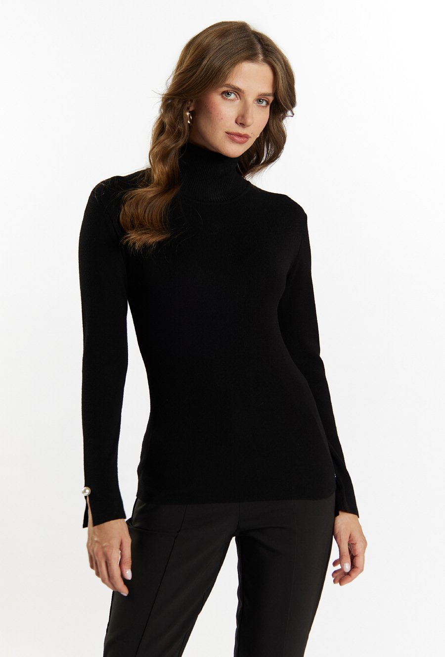 Sweter damski z biżuteryjną aplikacją