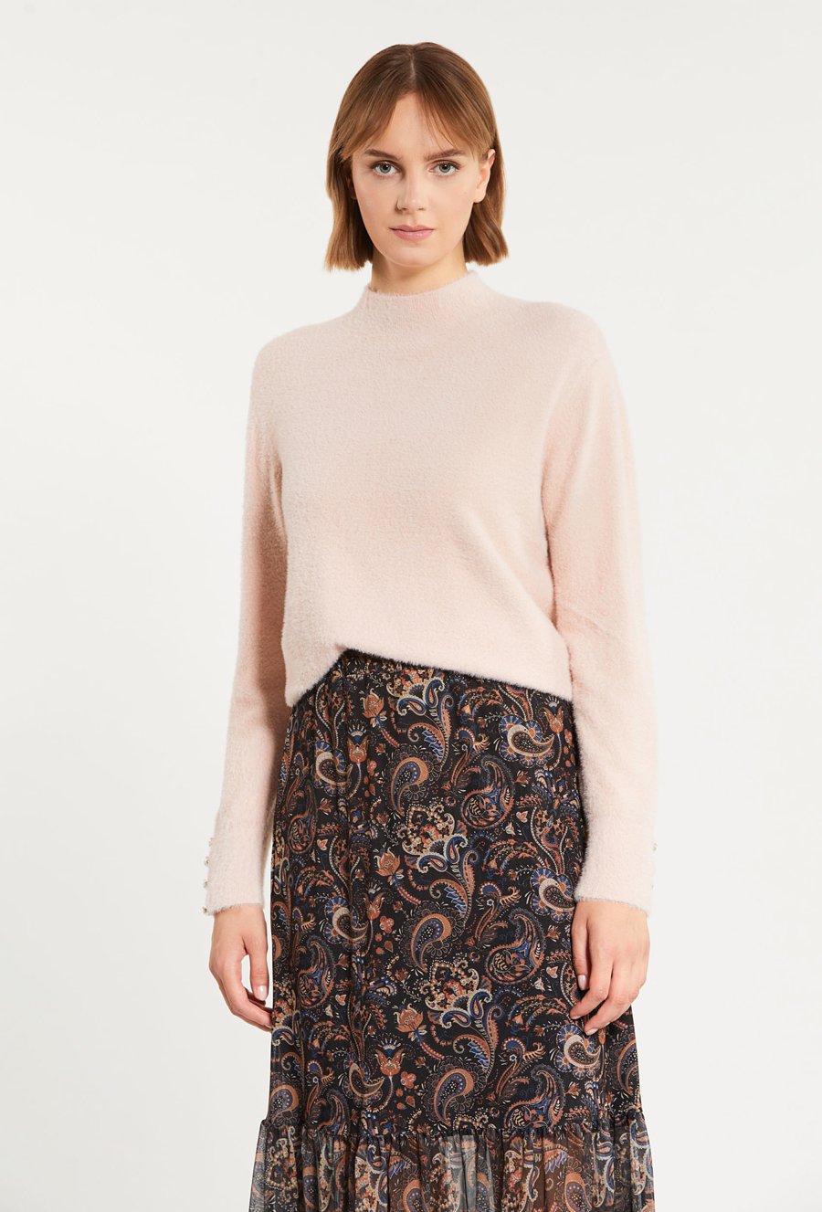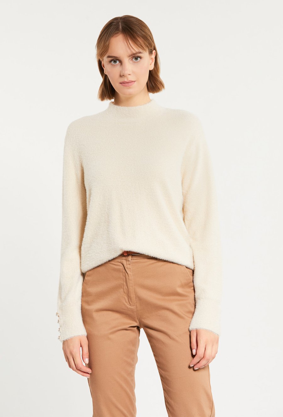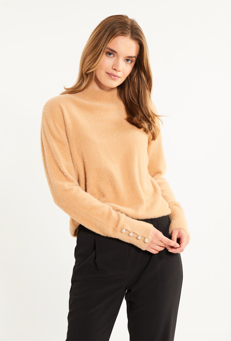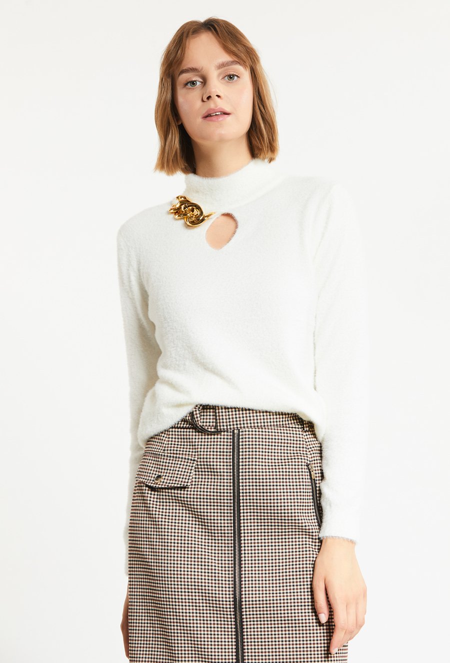 Sweter damski z biżuteryjną aplikacją