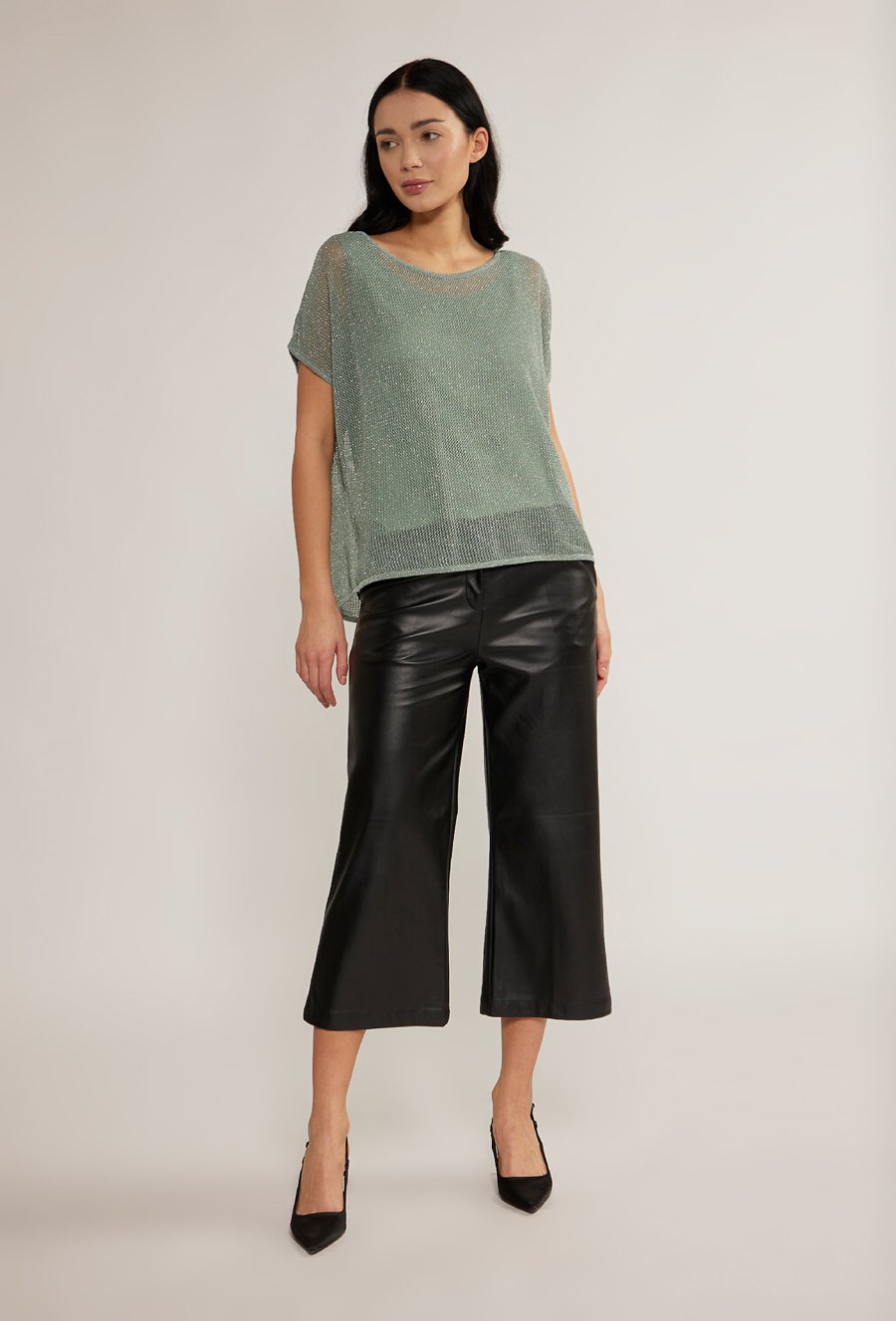 Połyskujący sweter z krótkim rękawem