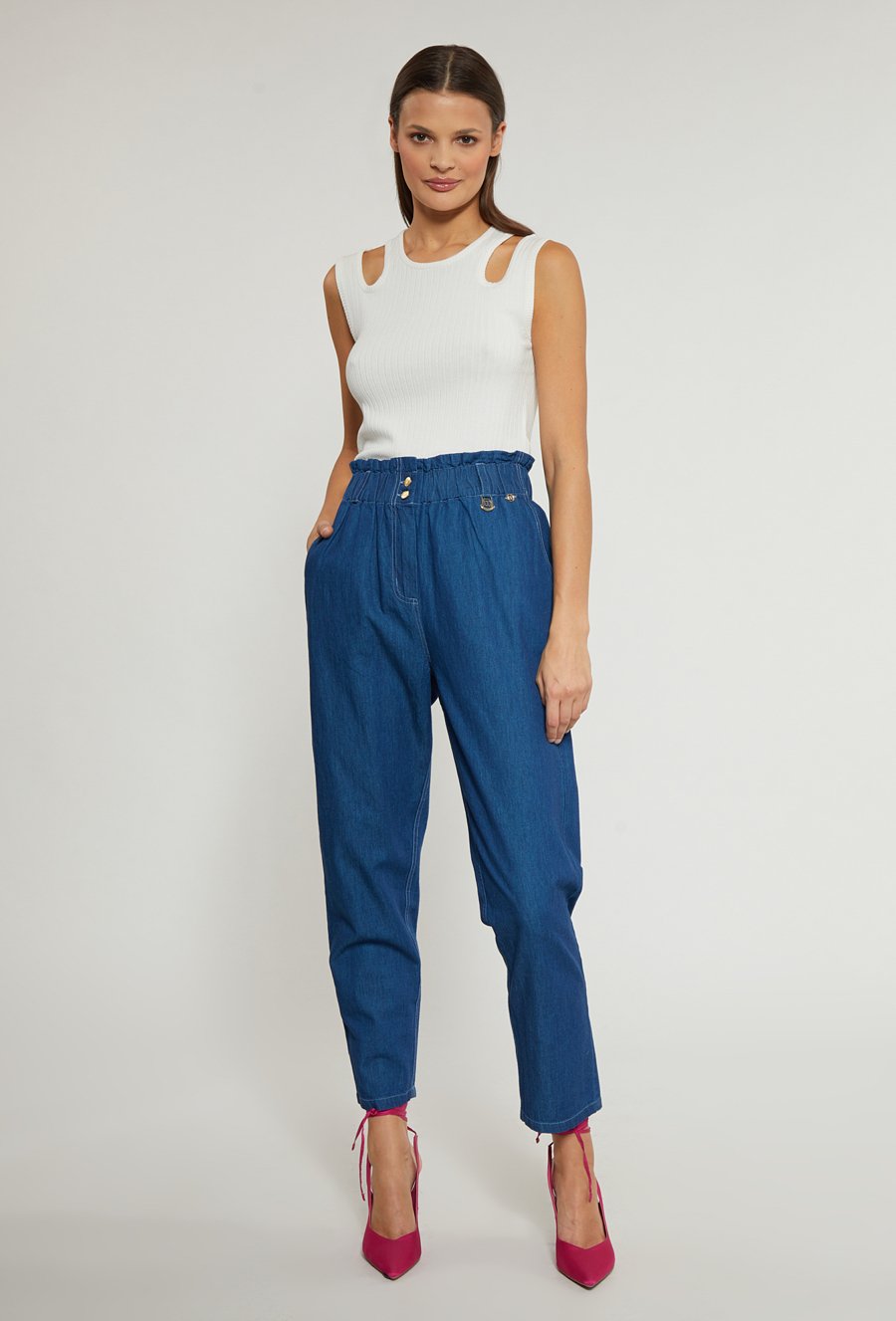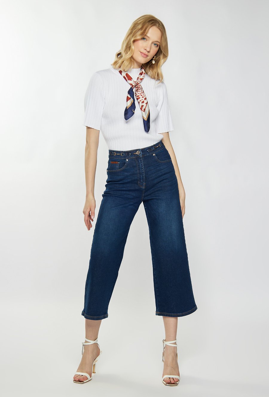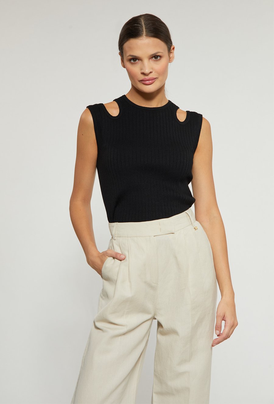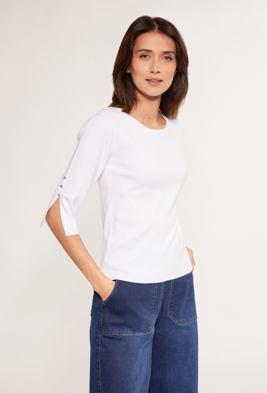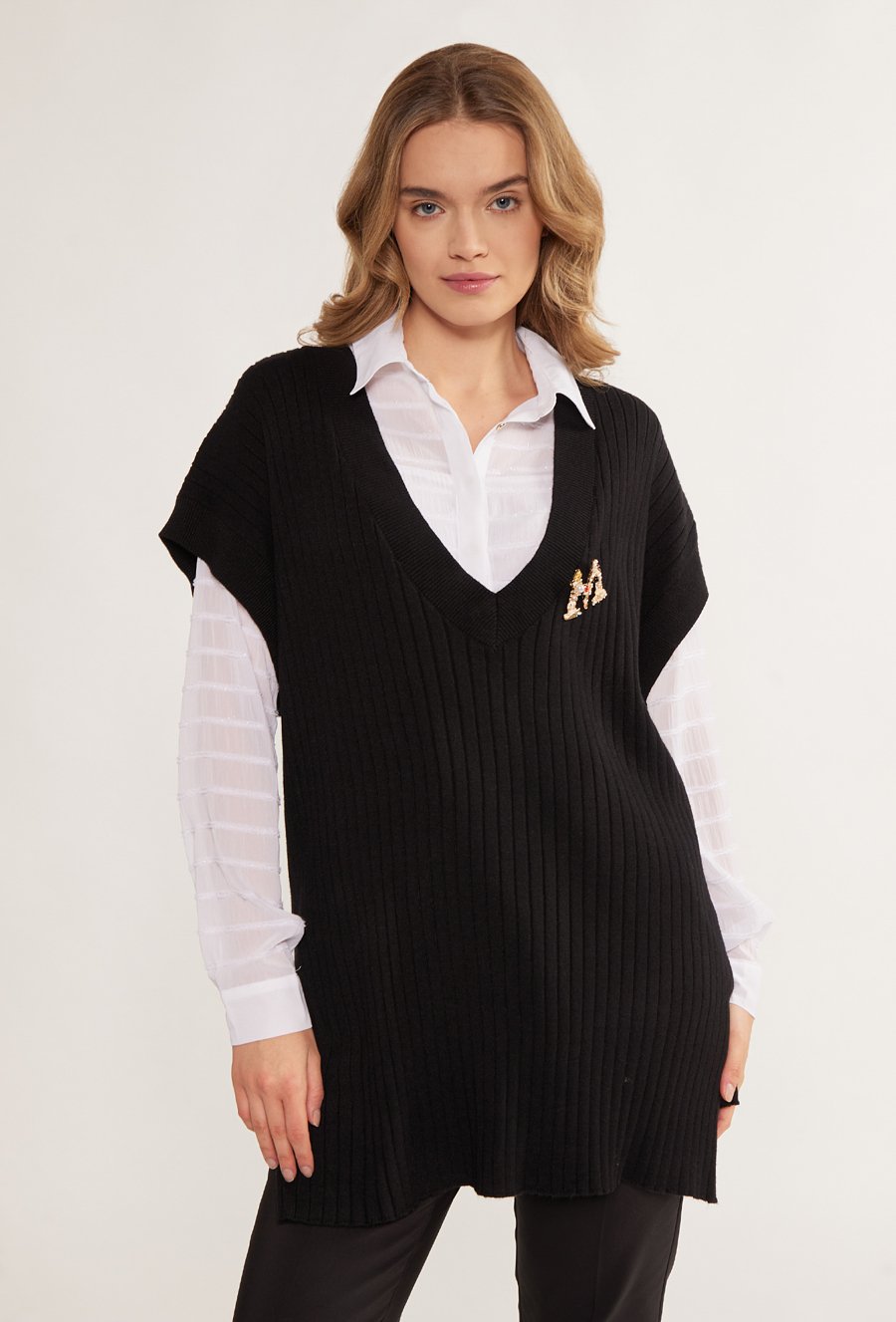 Prążkowany sweter z krótkim rękawem