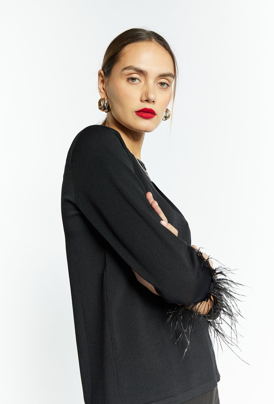 Sweter damski z ozdobnymi mankietami