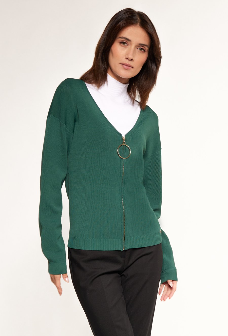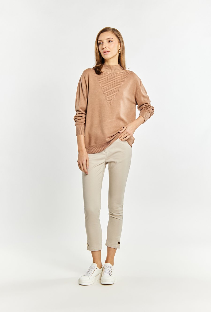 Sweter damski z ozdobnym zapięciem