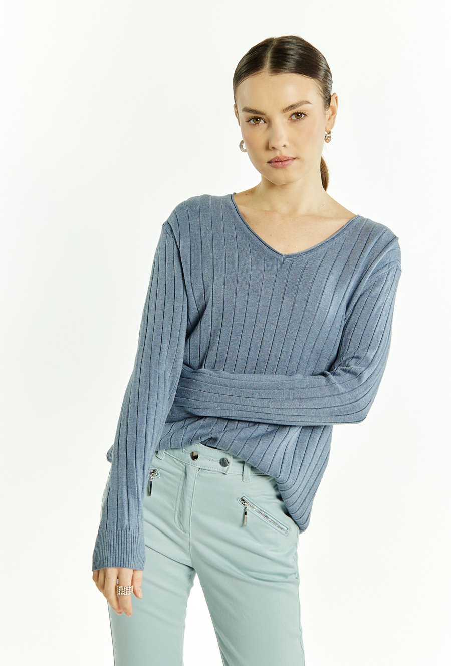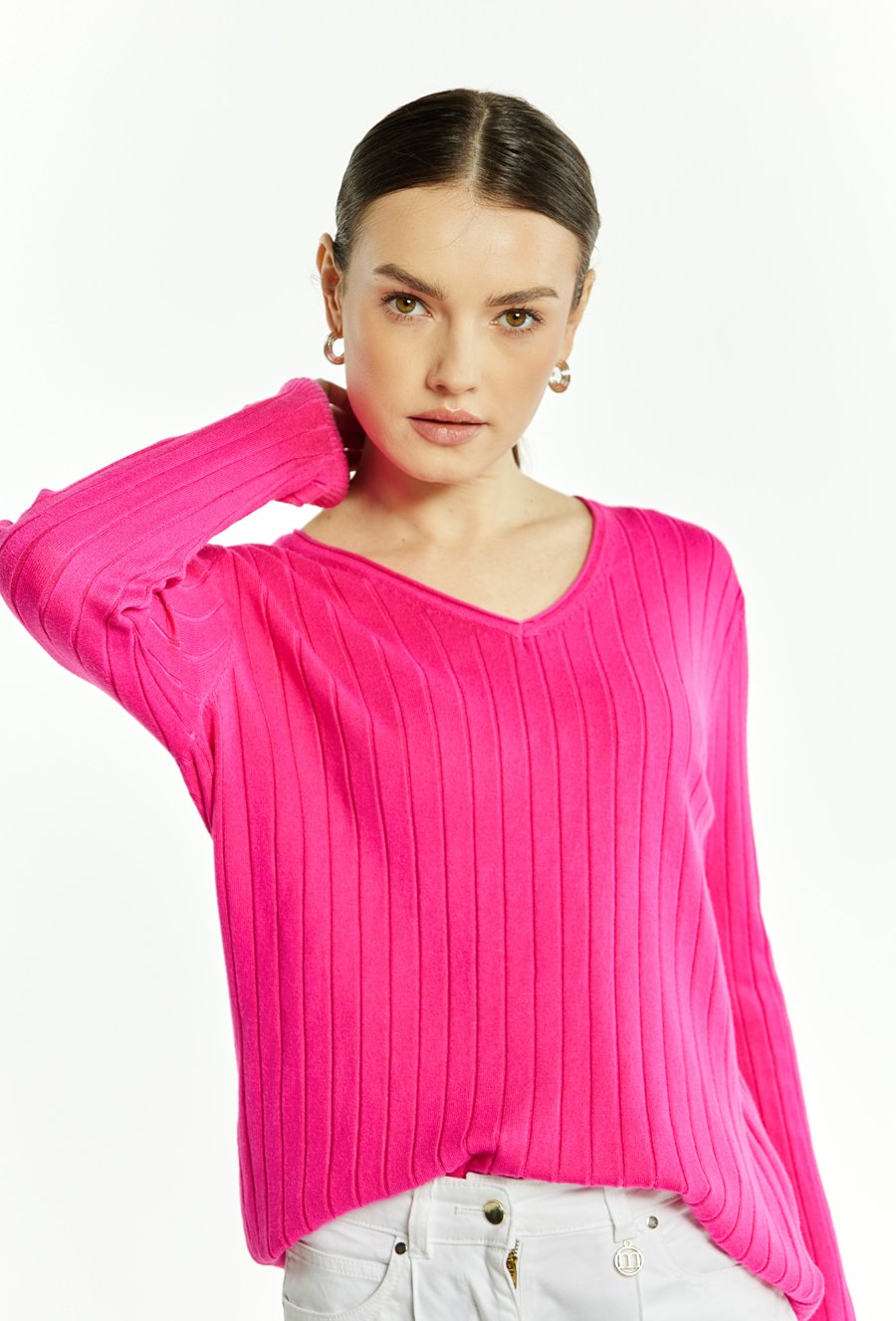 Sweter damski z dekoltem w serek