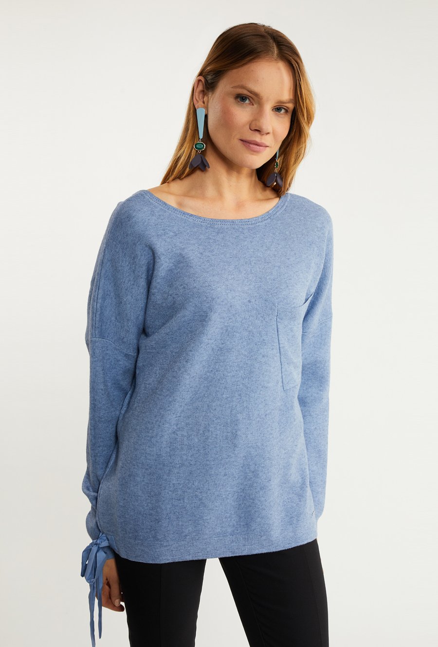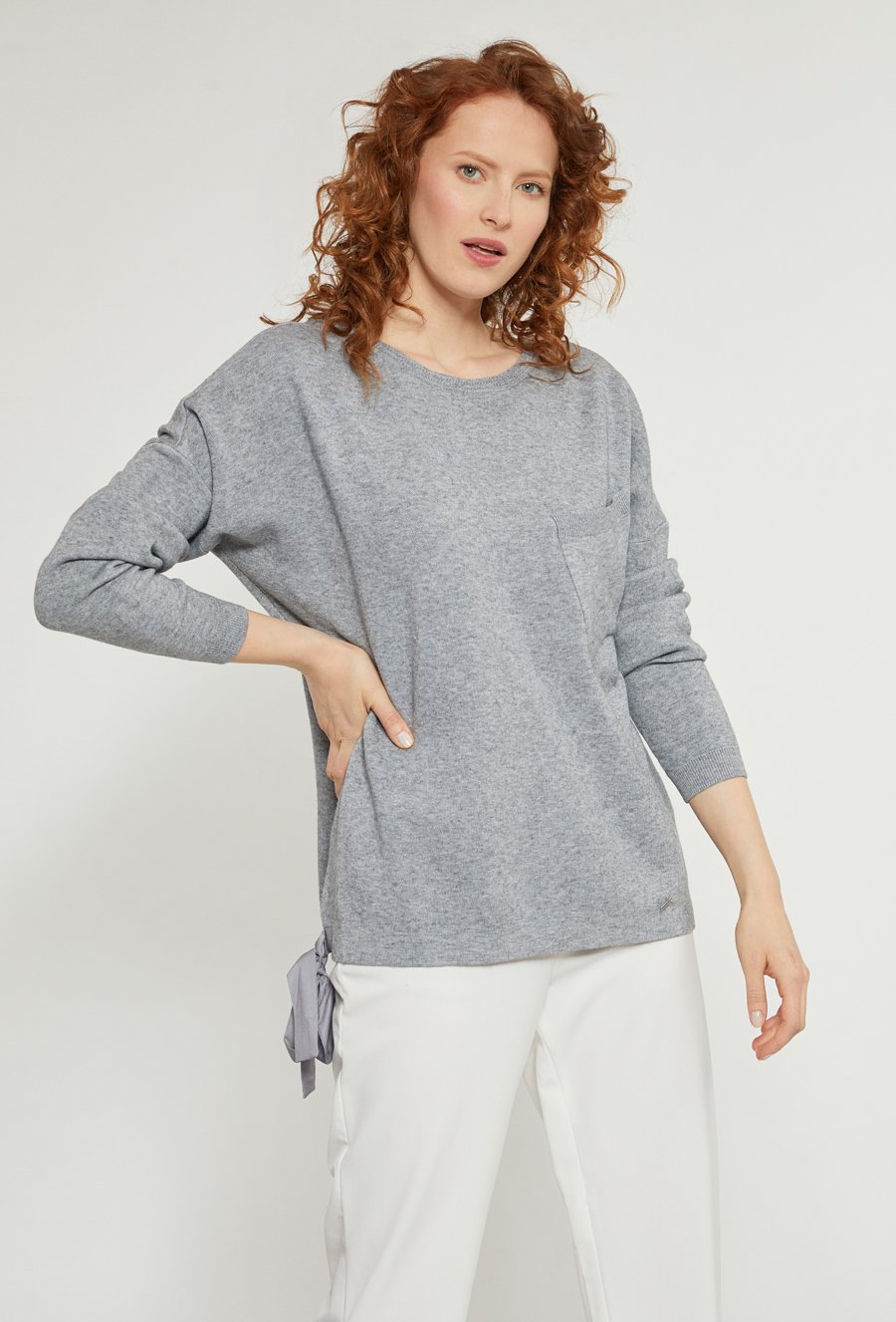 Sweter damski z ozdobnym wiązaniem