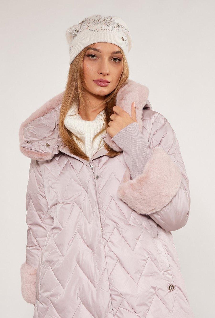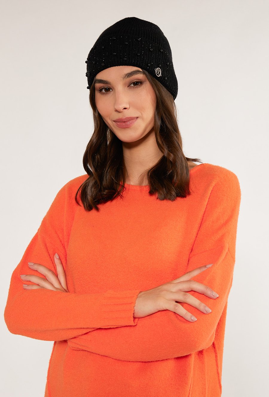 Beret zdobiony perełkami