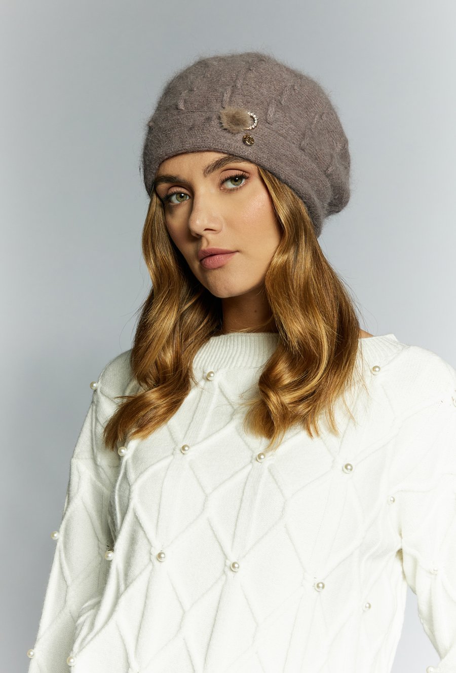 Beret damski z perełkami