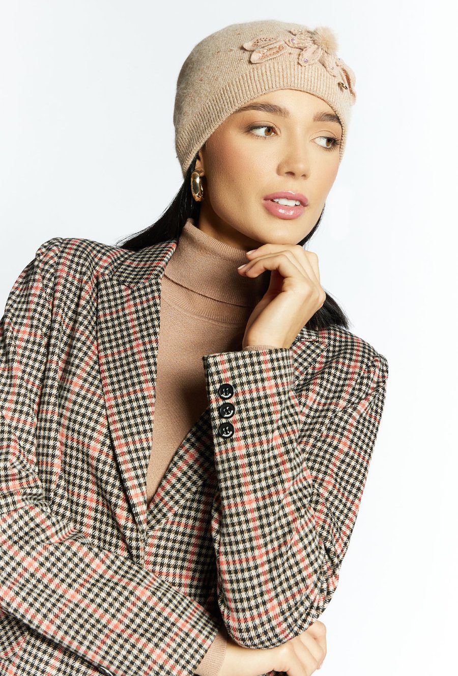 Beret damski ze zdobieniem
