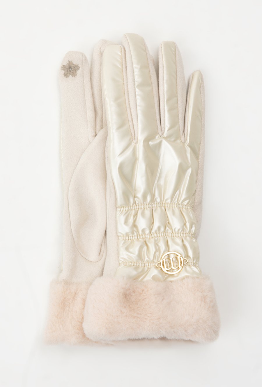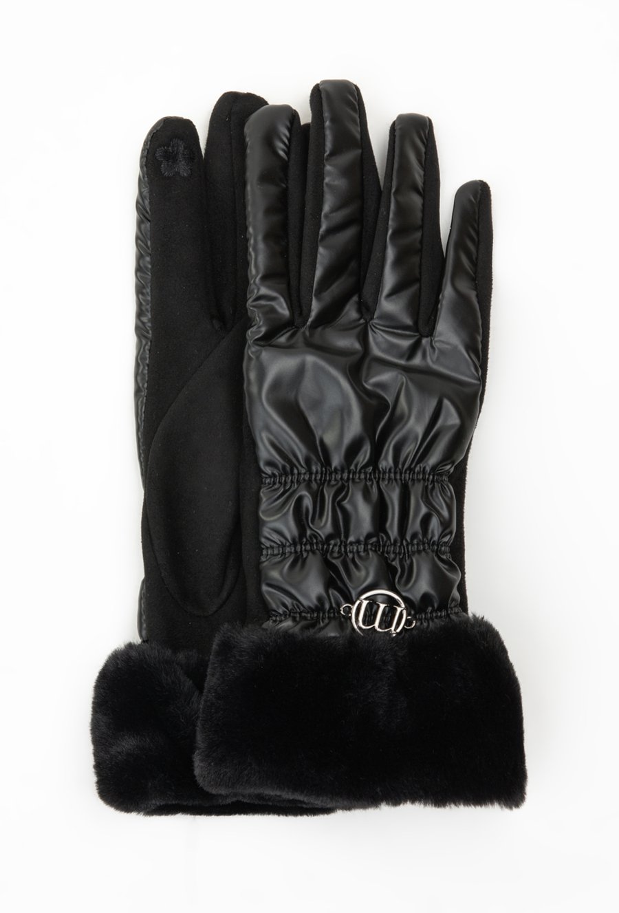 Połyskujące rękawiczki damskie z futerkiem