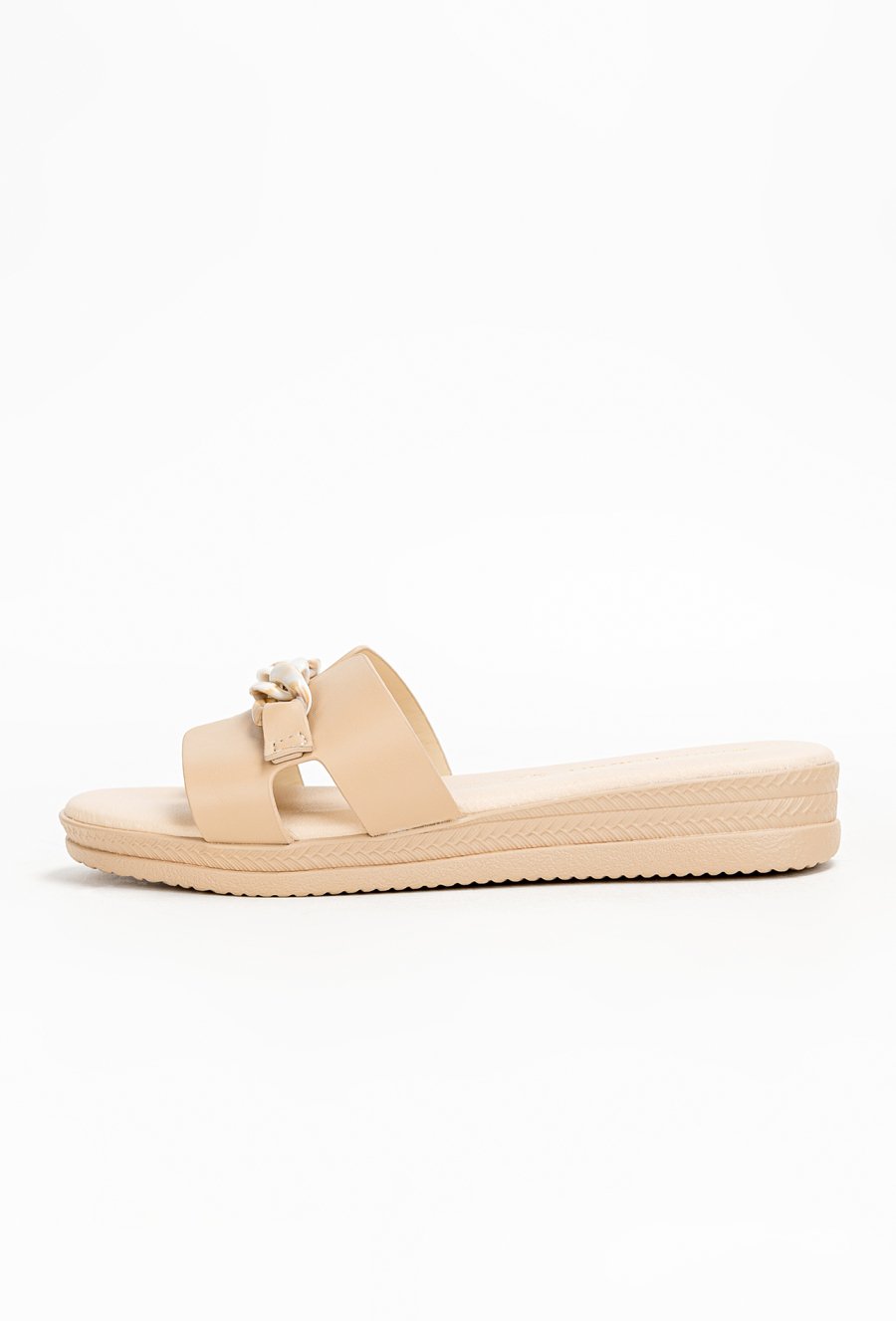 Beżowe czółenka z ozdobnym łańcuchem i odkrytą piętą PARMA