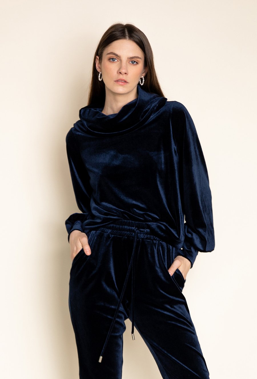 Granatowa welurowa bluza