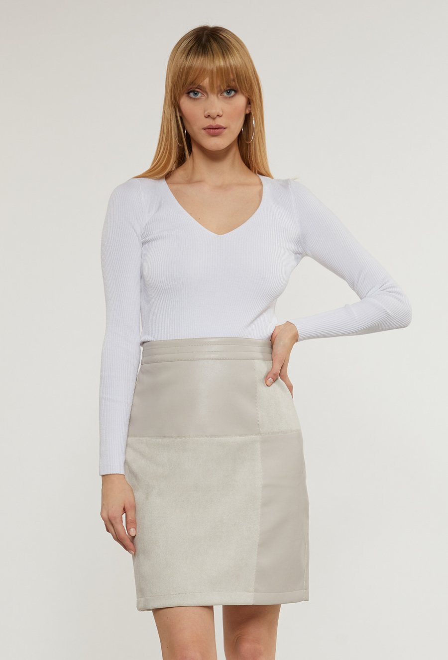 Spódnica z ekoskóry z przekładanym materiałem