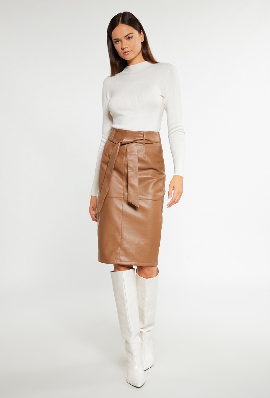 Beżowa spódnica o ołówkowym fasonie