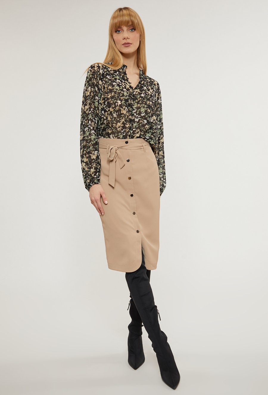 Beżowa ołówkowa spódnica na guziki