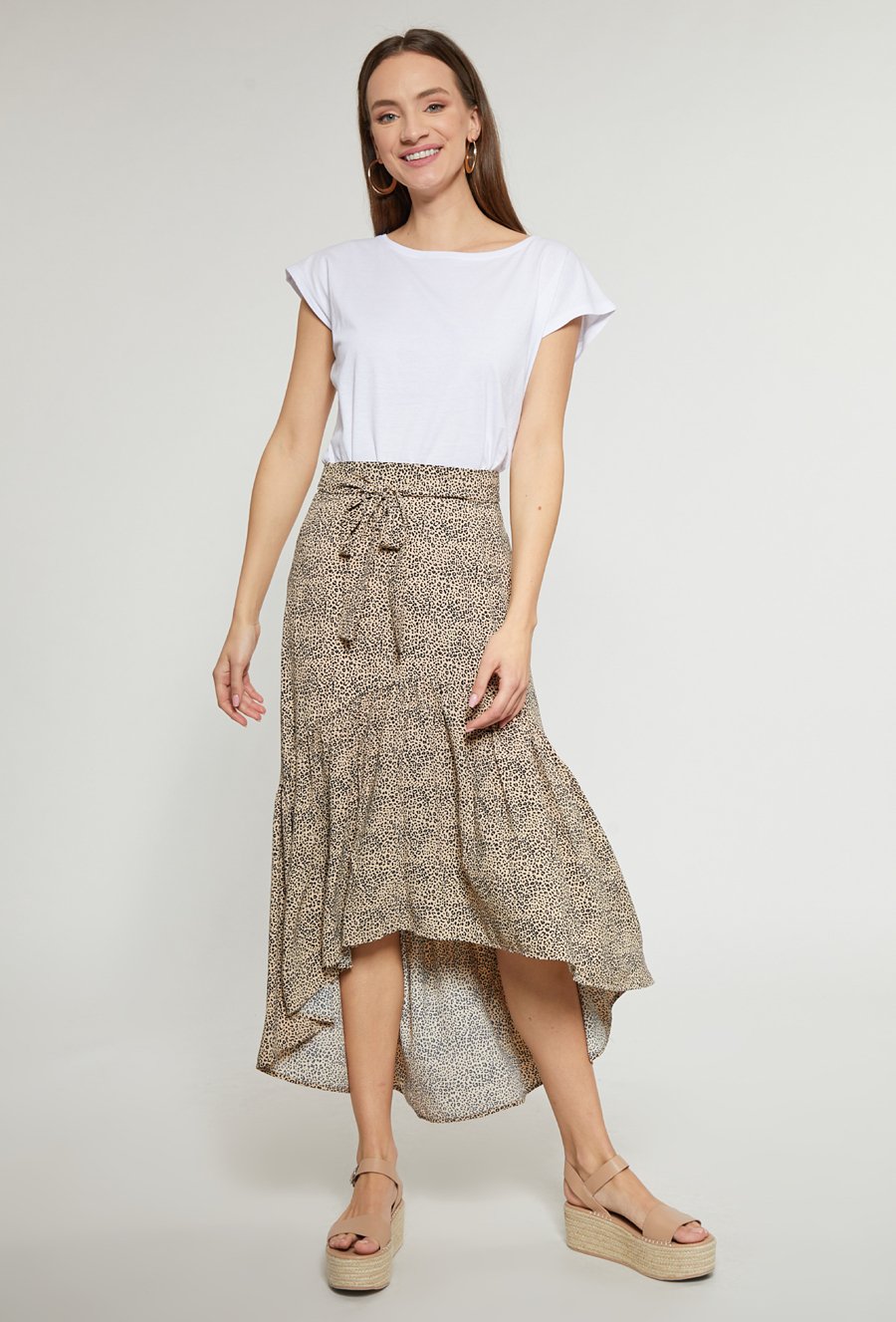 Asymetryczna spódnica midi w cętki