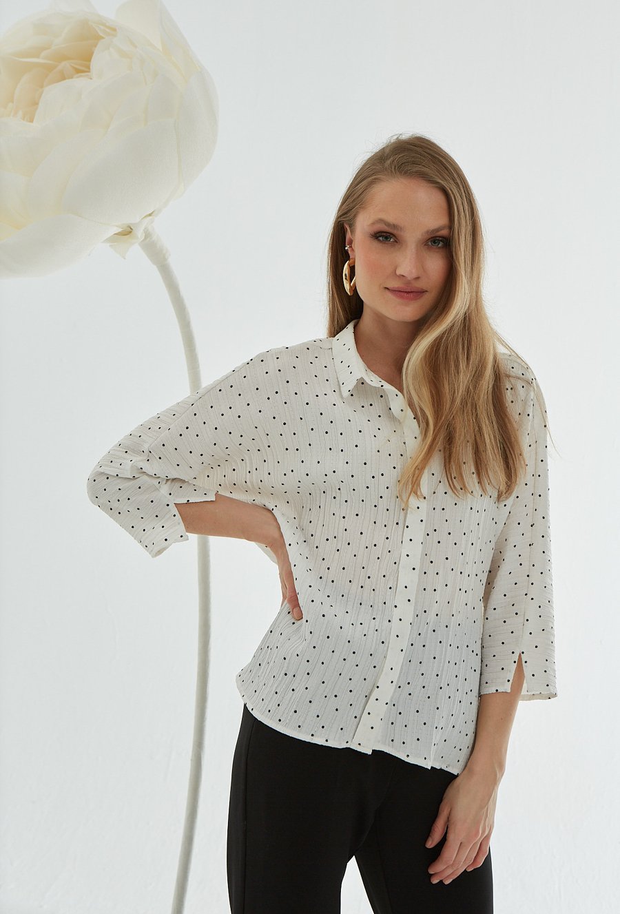 Biała koszula w kropeczki