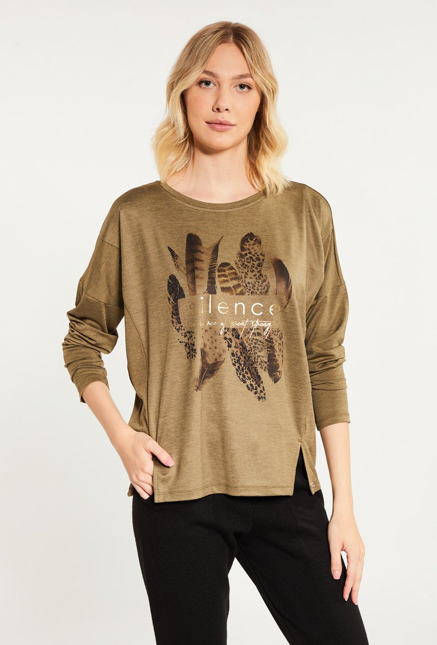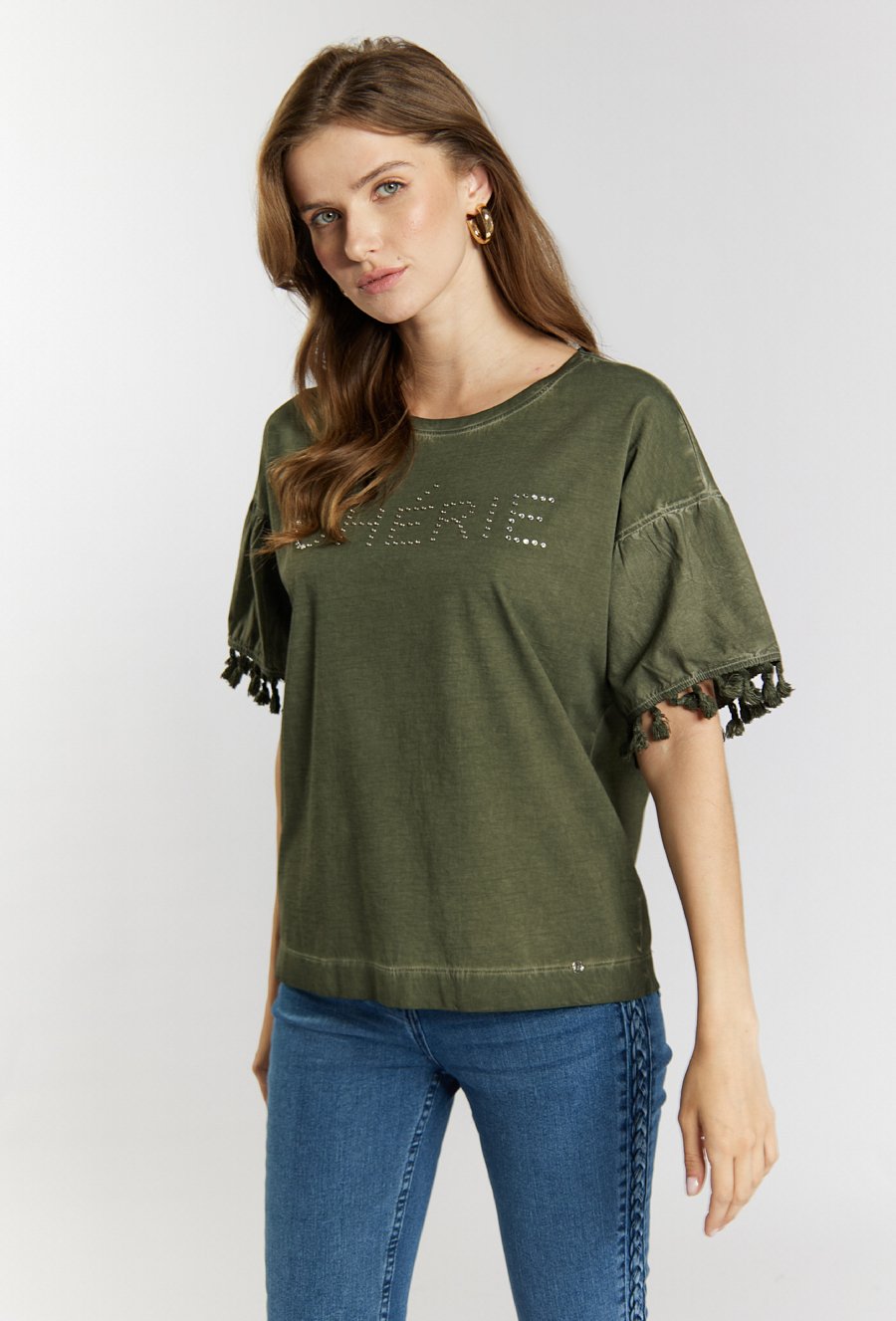 Bluzka z dżetowym napisem