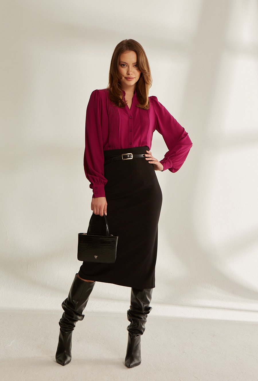 Bordowa koszula z z żabotem