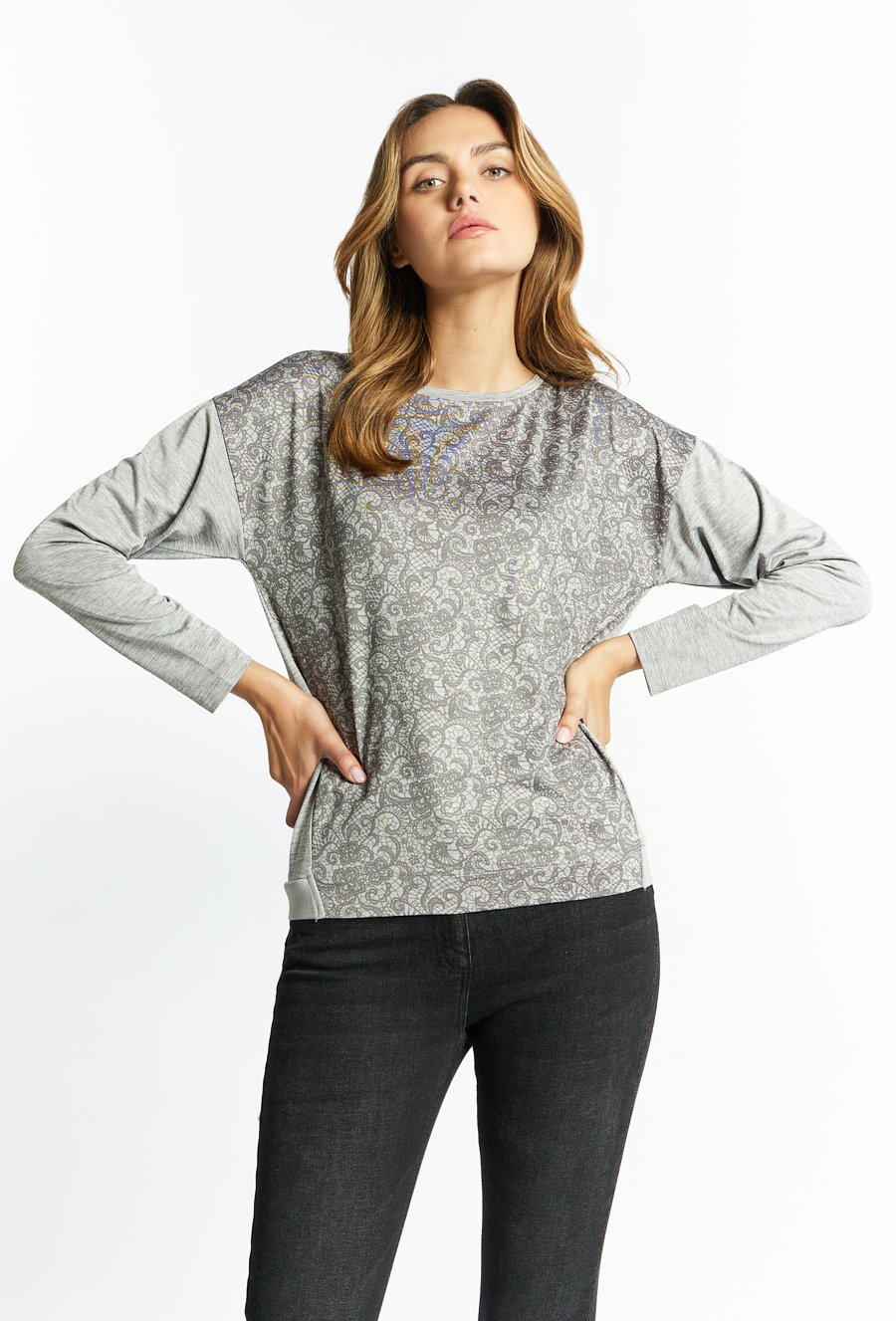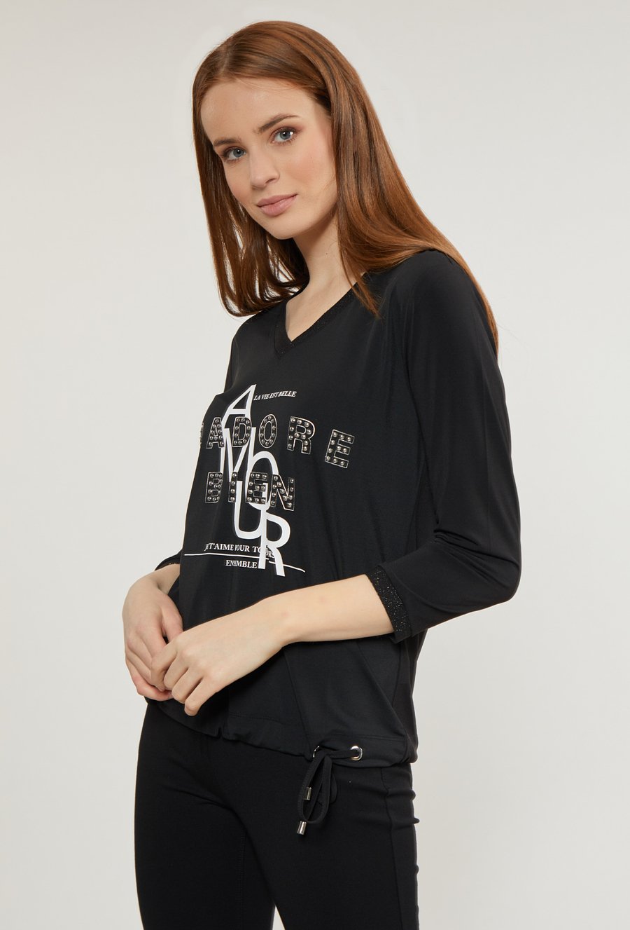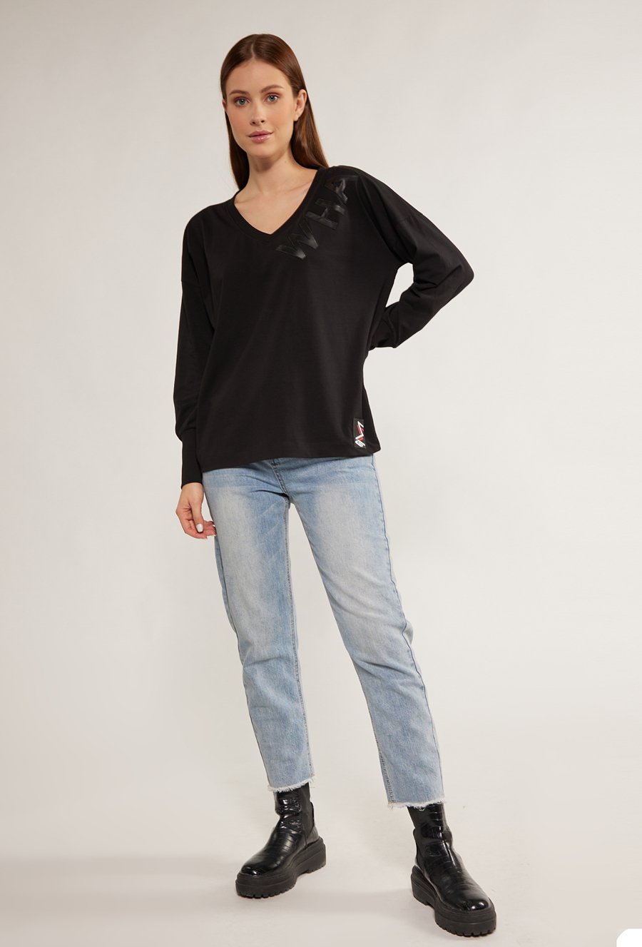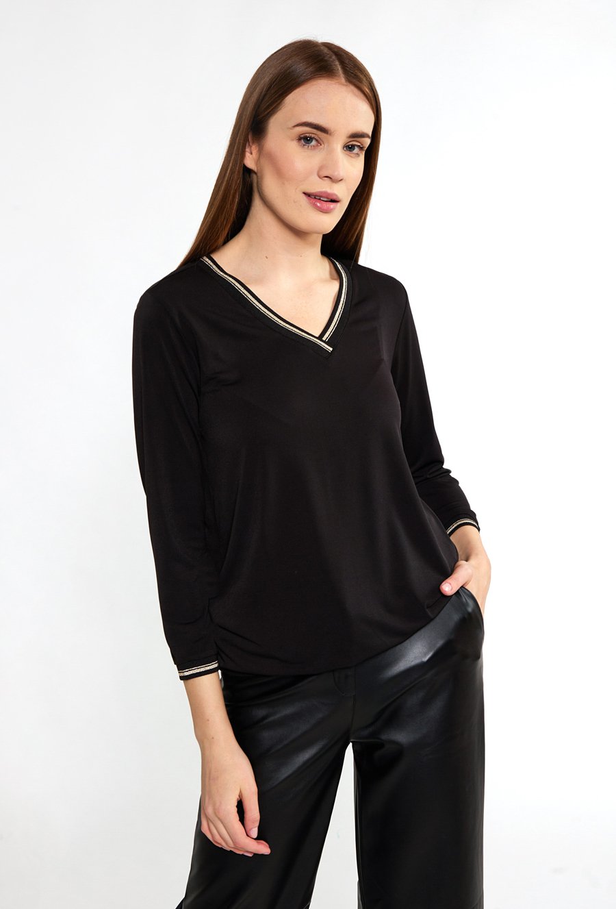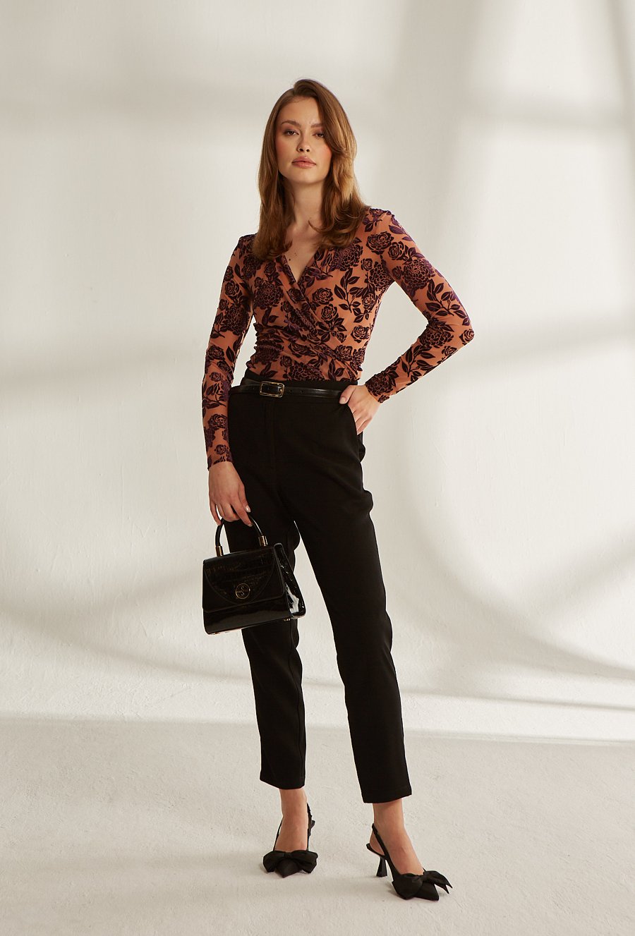 Bluzka z welurowa aplikacją i kopertowym dekoltem