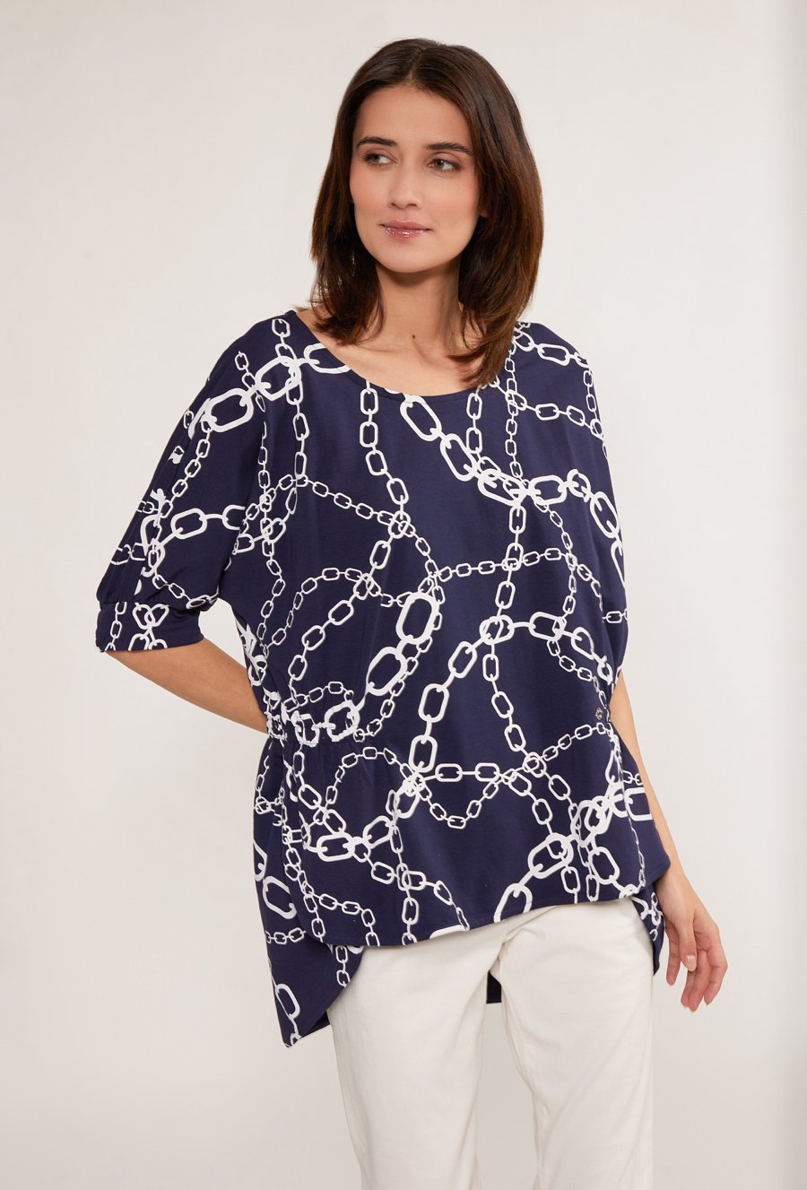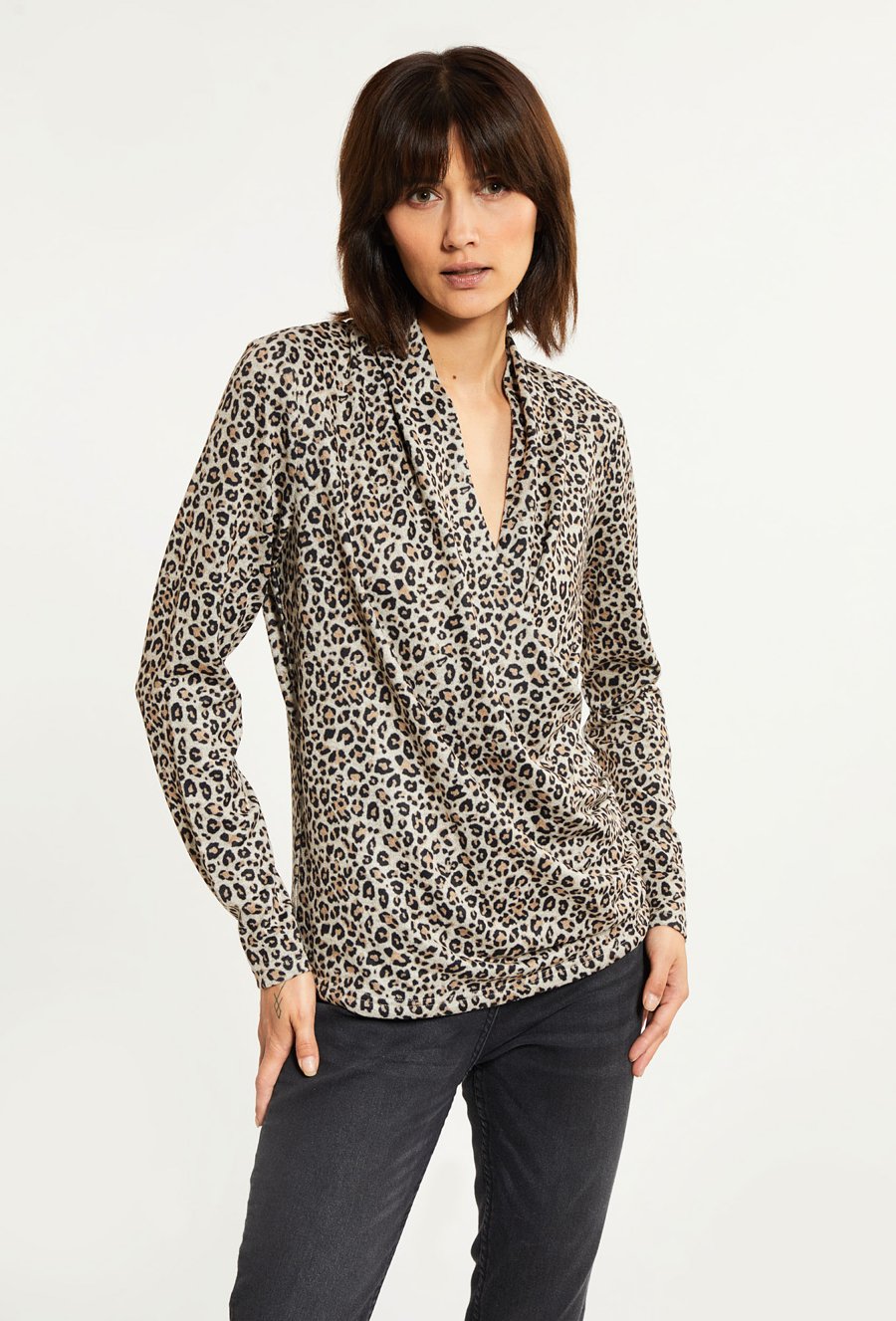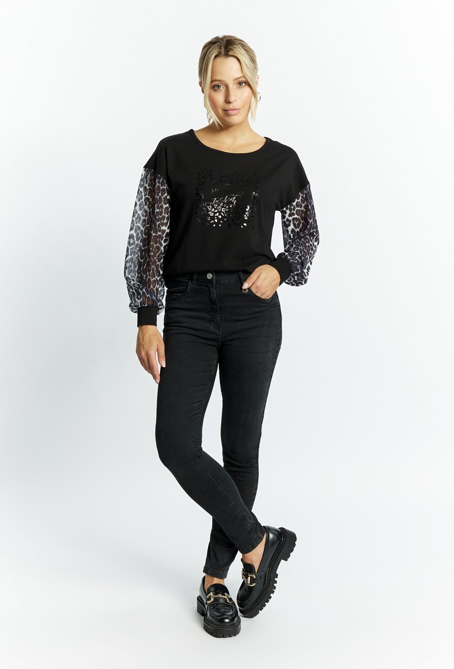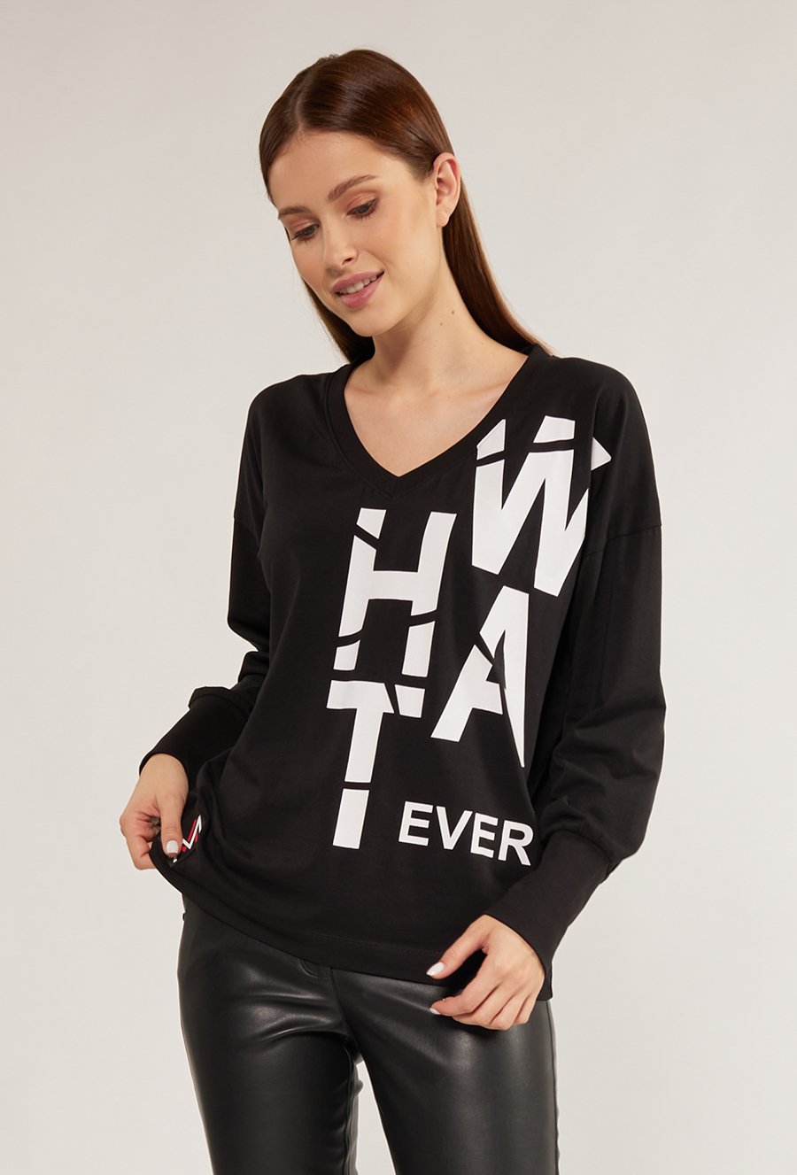 Bluzka z welurowa aplikacją i kopertowym dekoltem