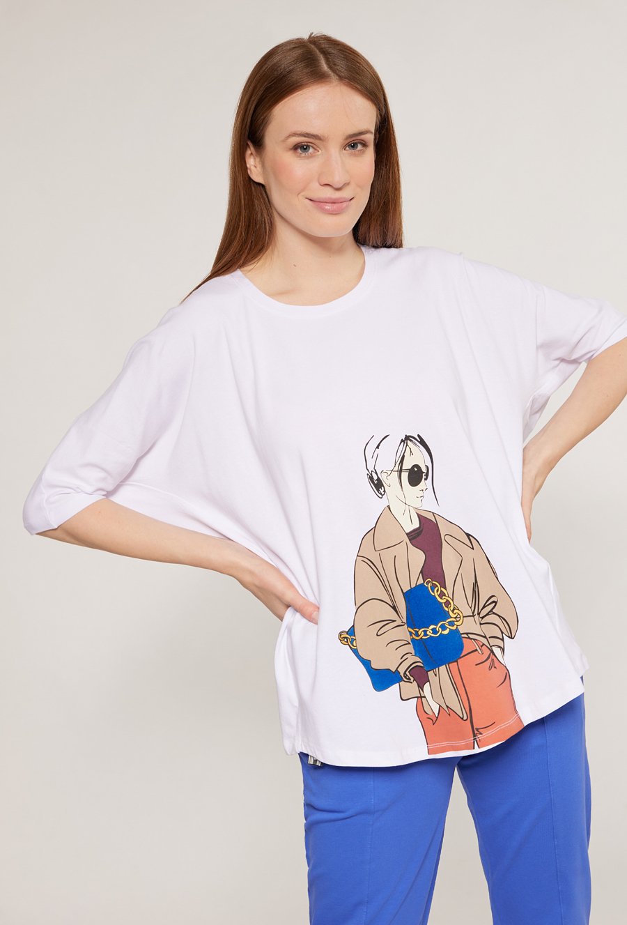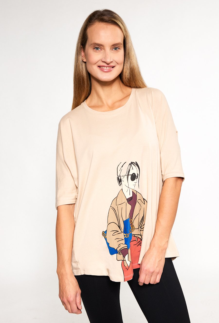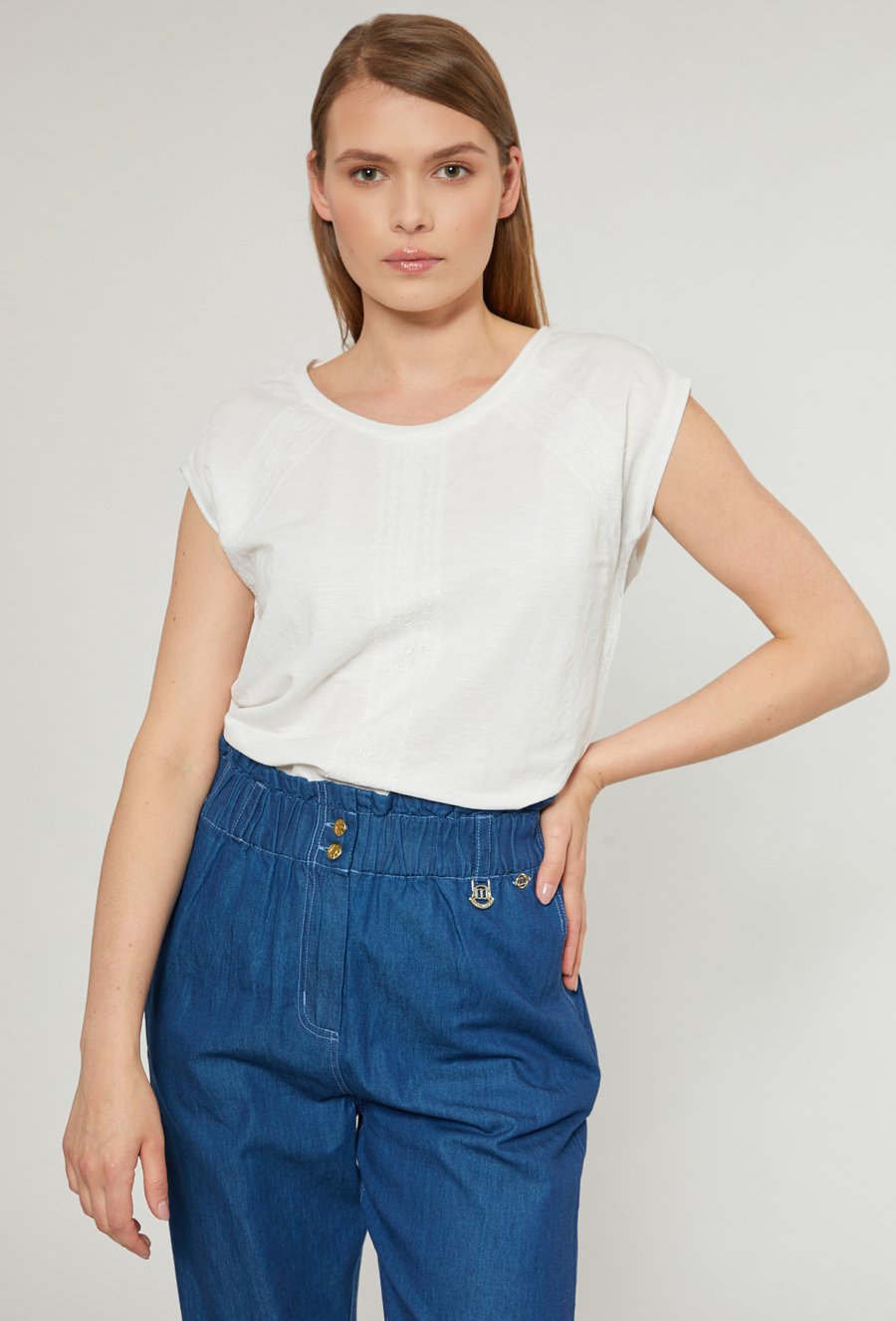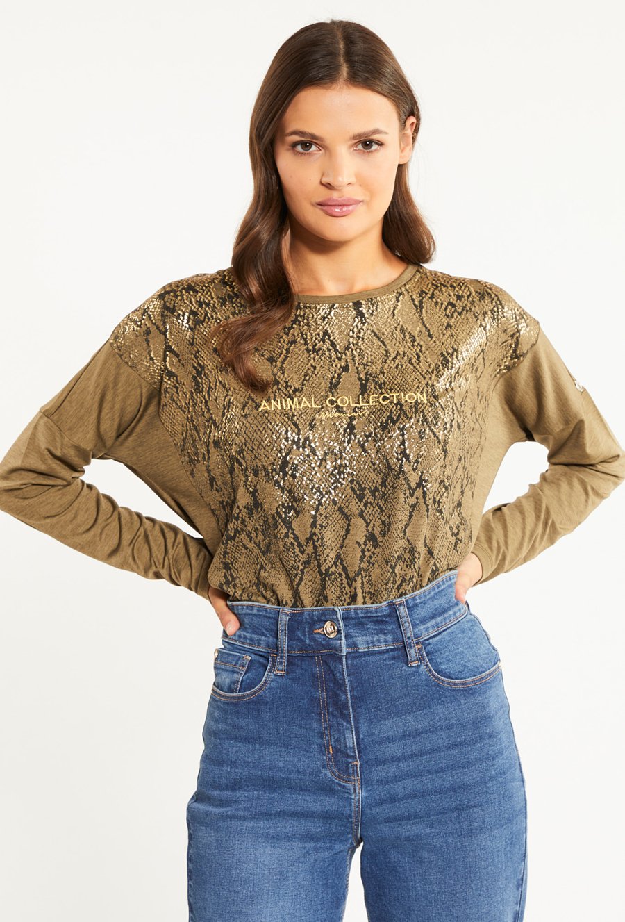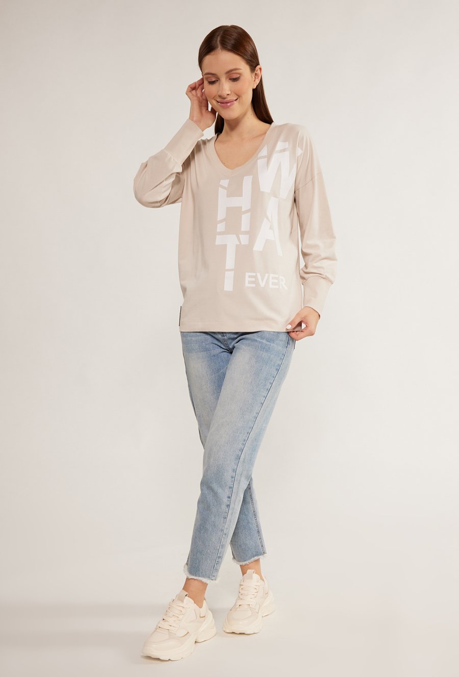 Bluzka z welurowa aplikacją i kopertowym dekoltem