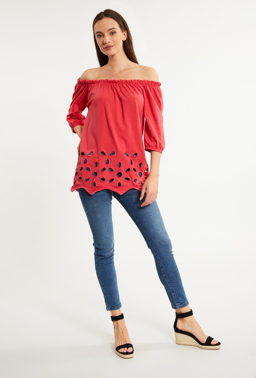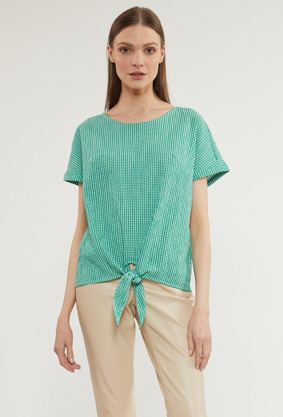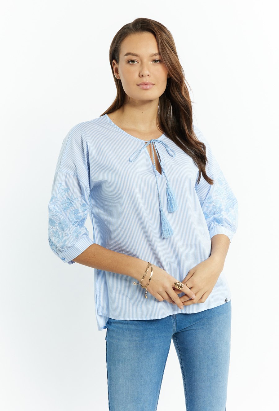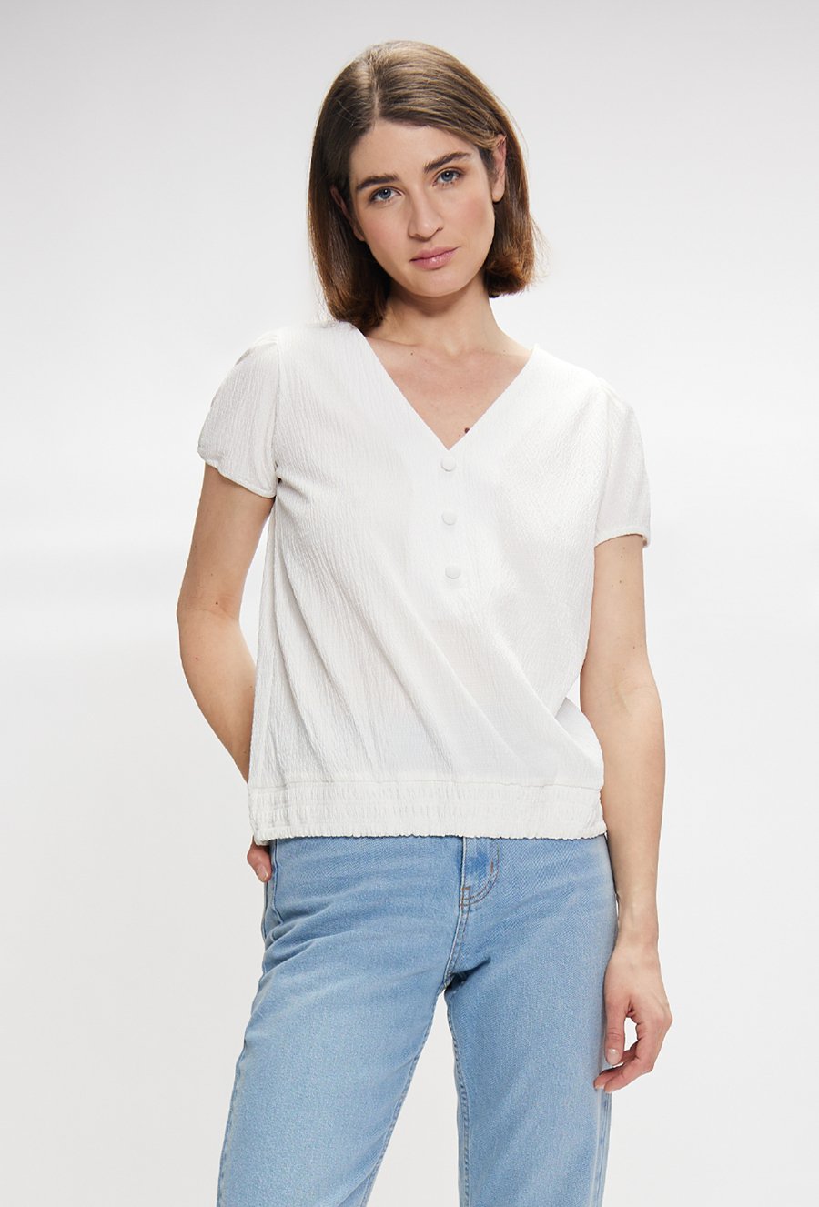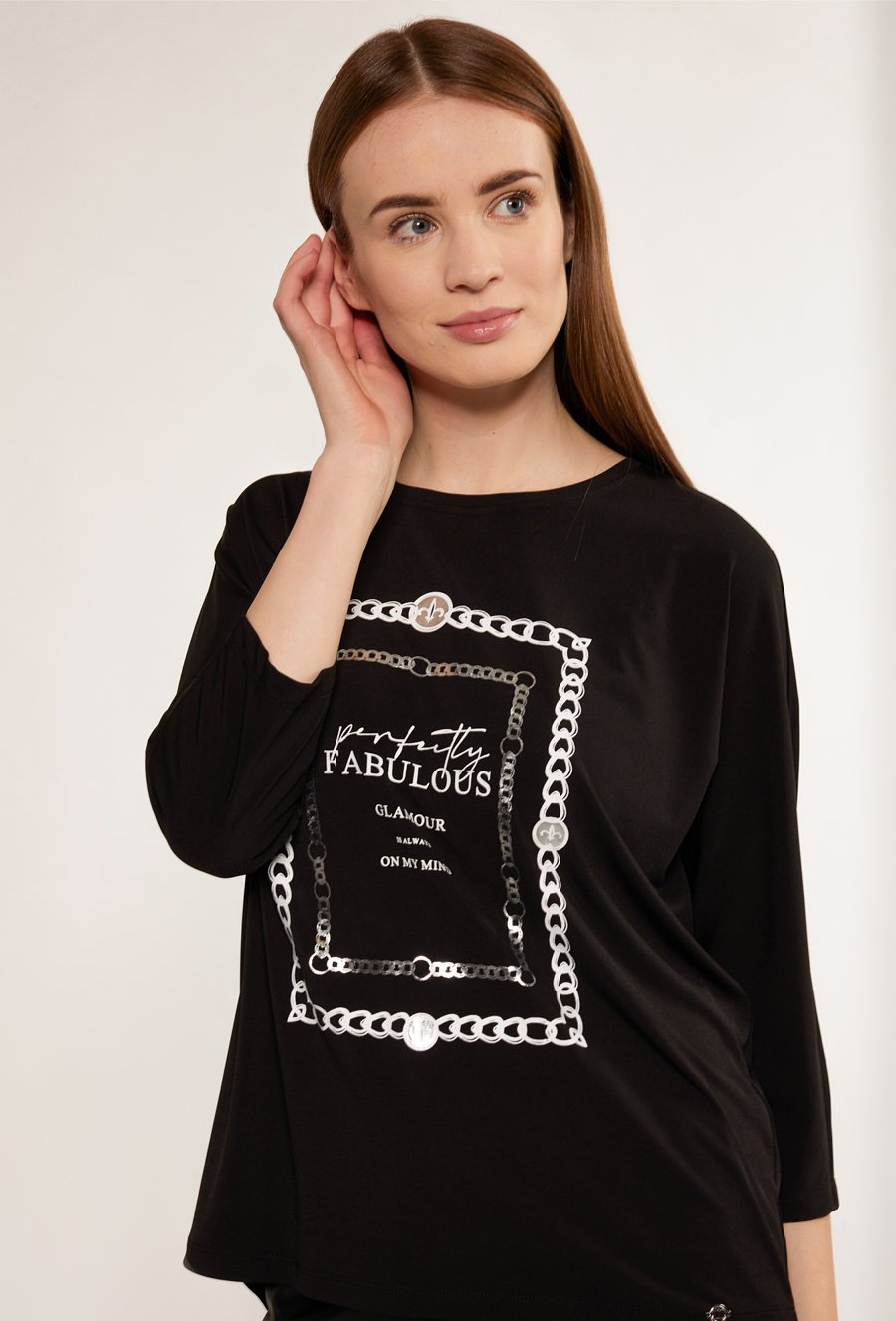 Bluzka z biżuteryjną aplikacją przy dekolcie