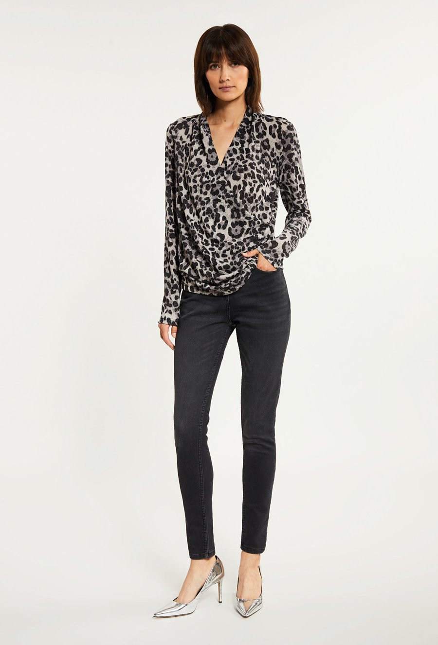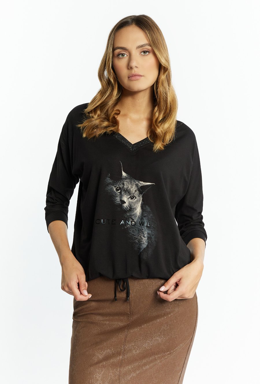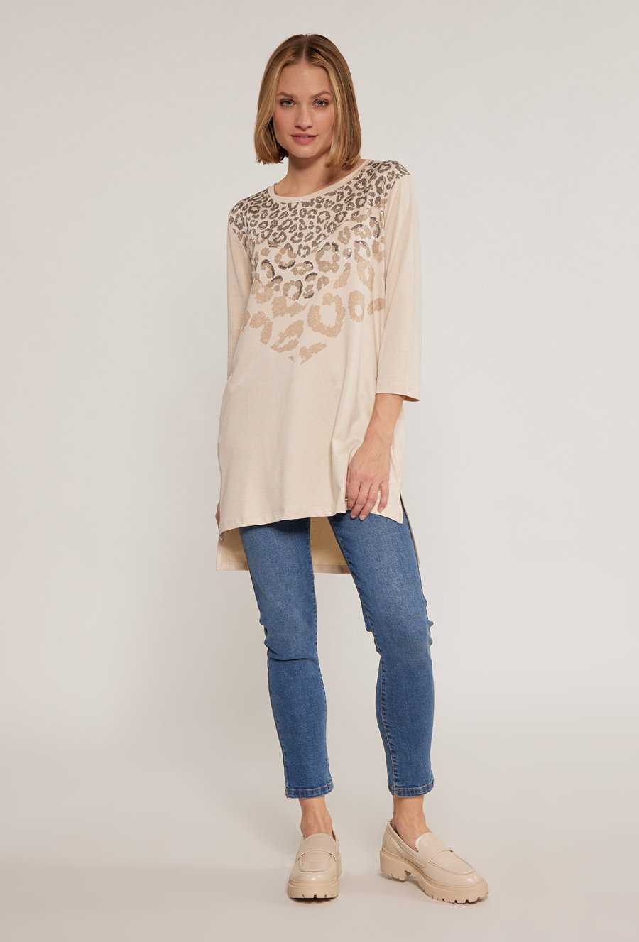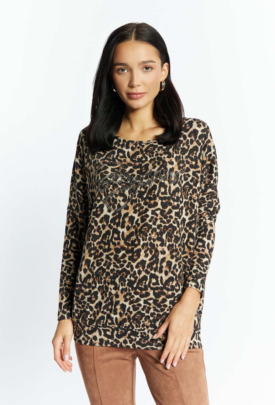 Bluzka o dłuższym kroju z wzorem w cętki