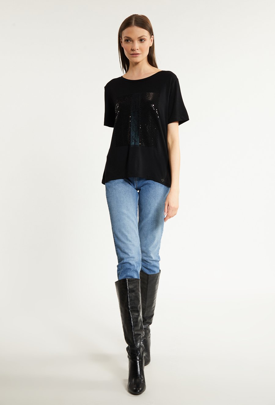 T-shirt damski z cekinową aplikacją