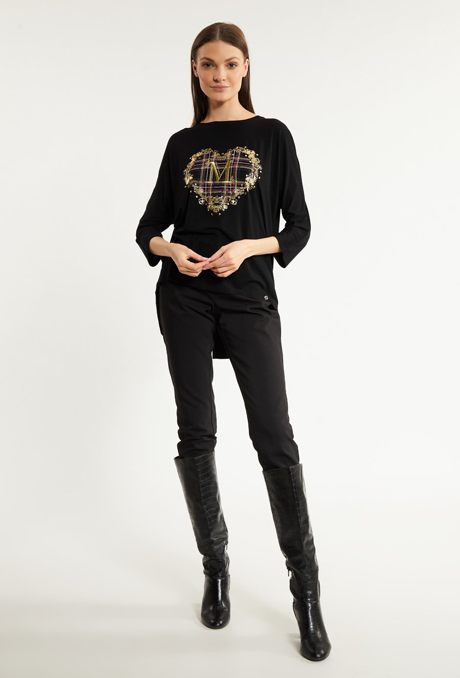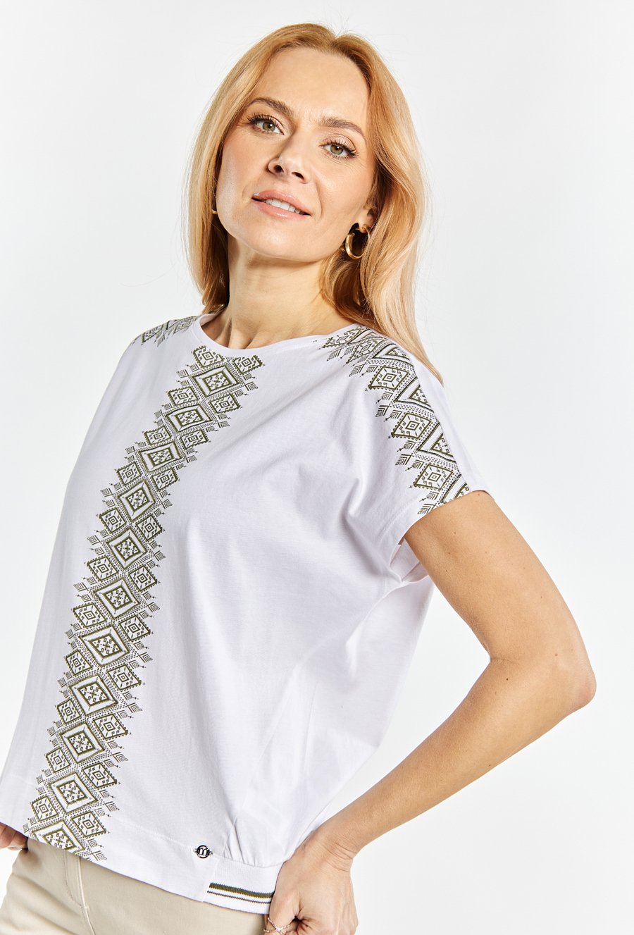 T-shirt damski z ozdobnym panelem