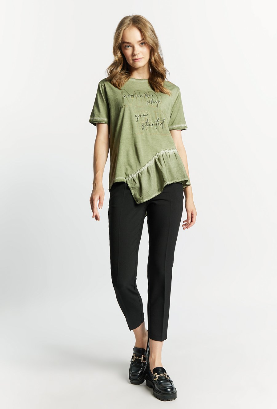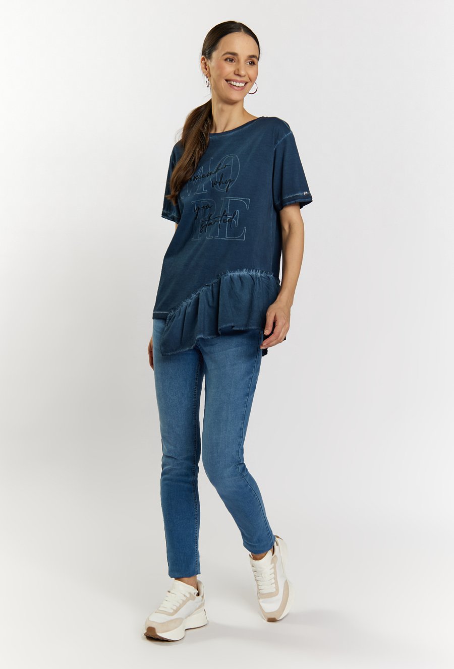 T-shirt damski z asymetryczną falbanką