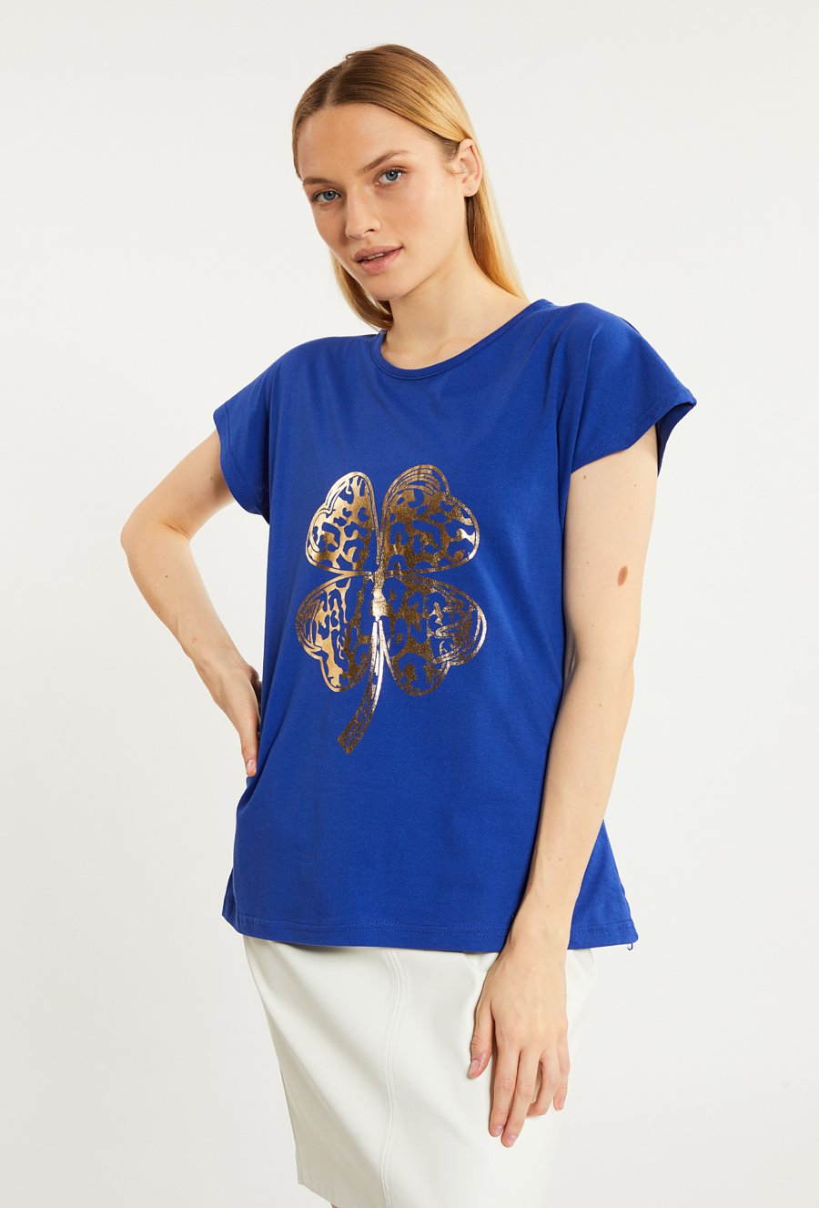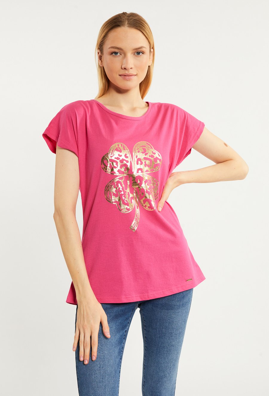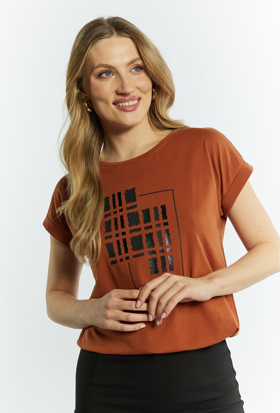 T-shirt damski z połyskującym panelem