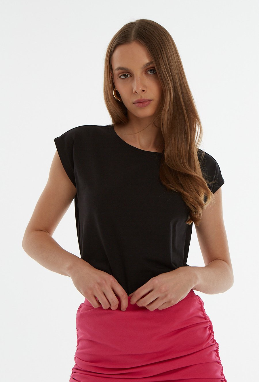 Czarny dopasowany półgolf z marszczeniem