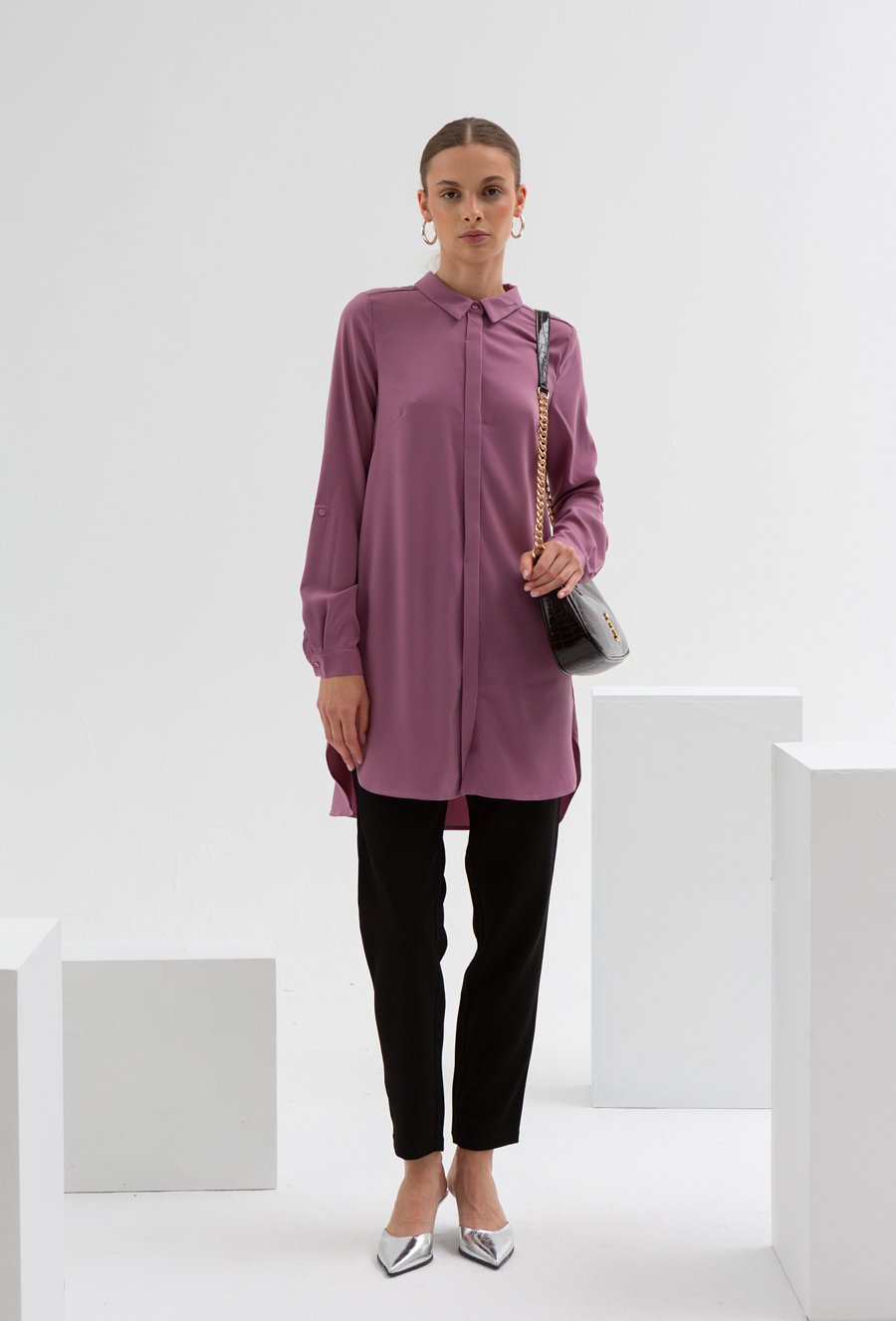 Długa koszula w kolorze wrzosowym