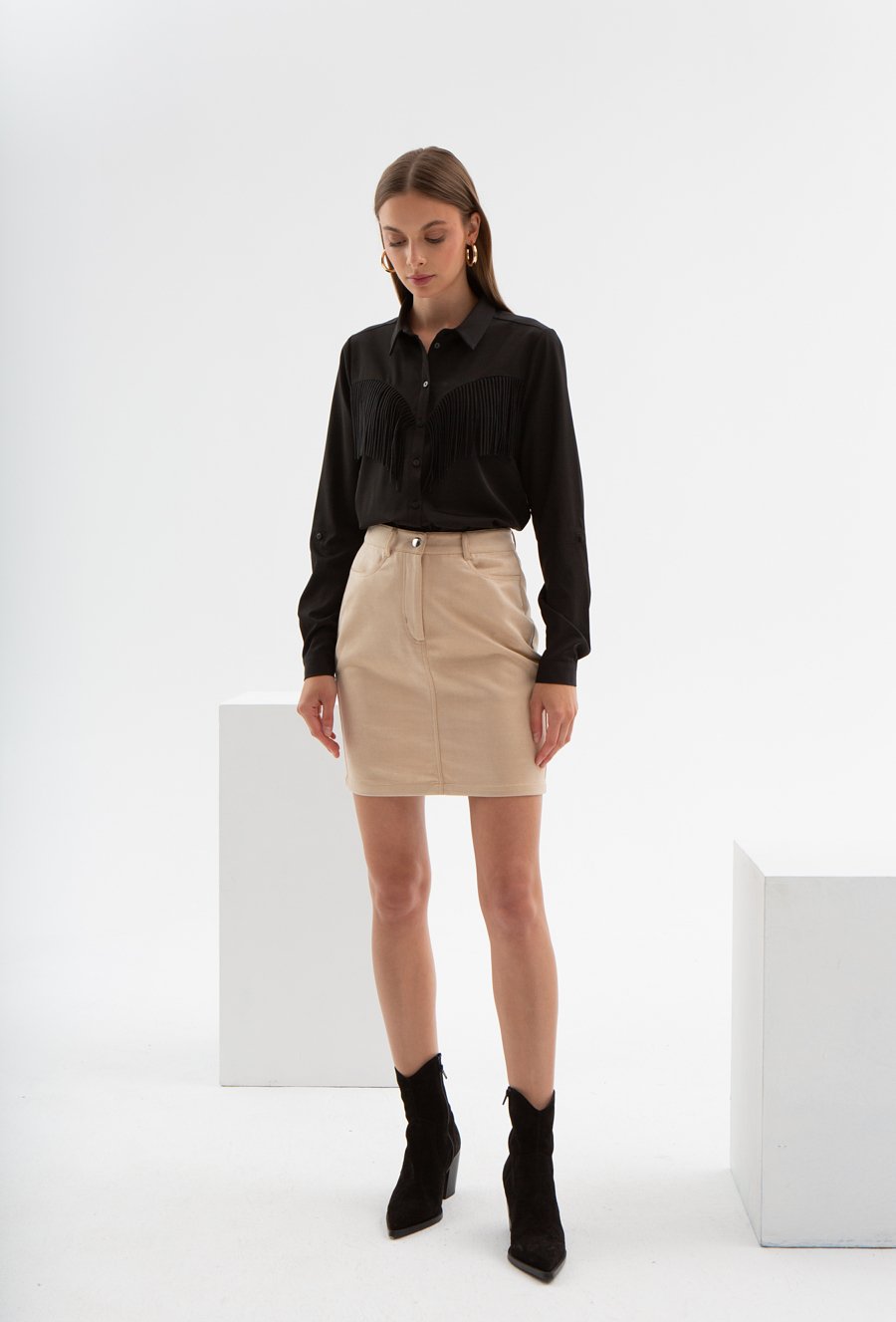 Czarna koszula z frędzlami