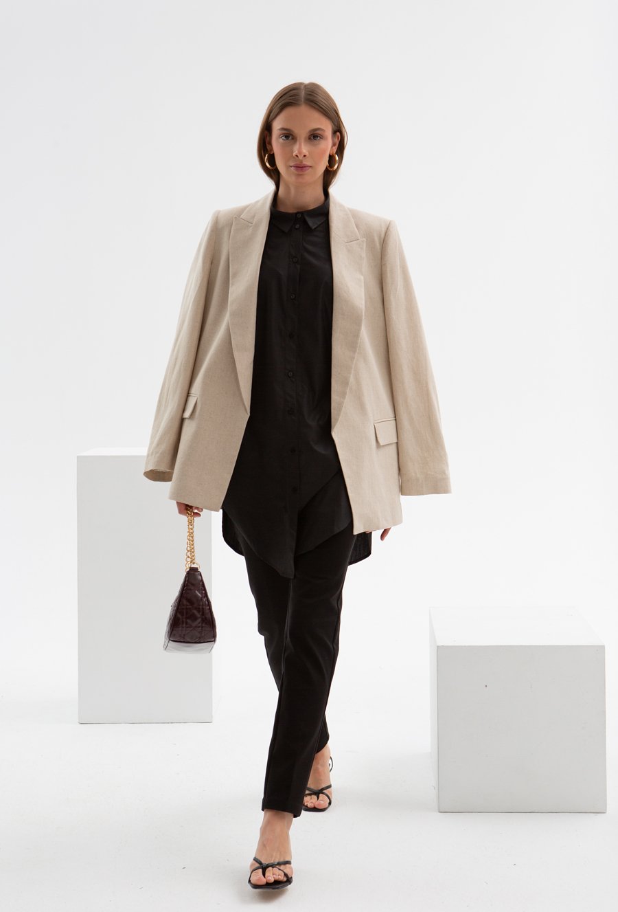 Długa koszula z domieszką lnu