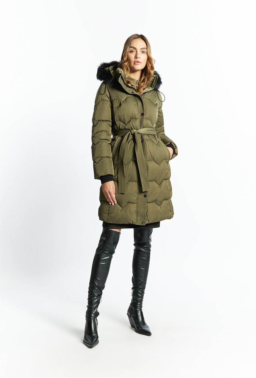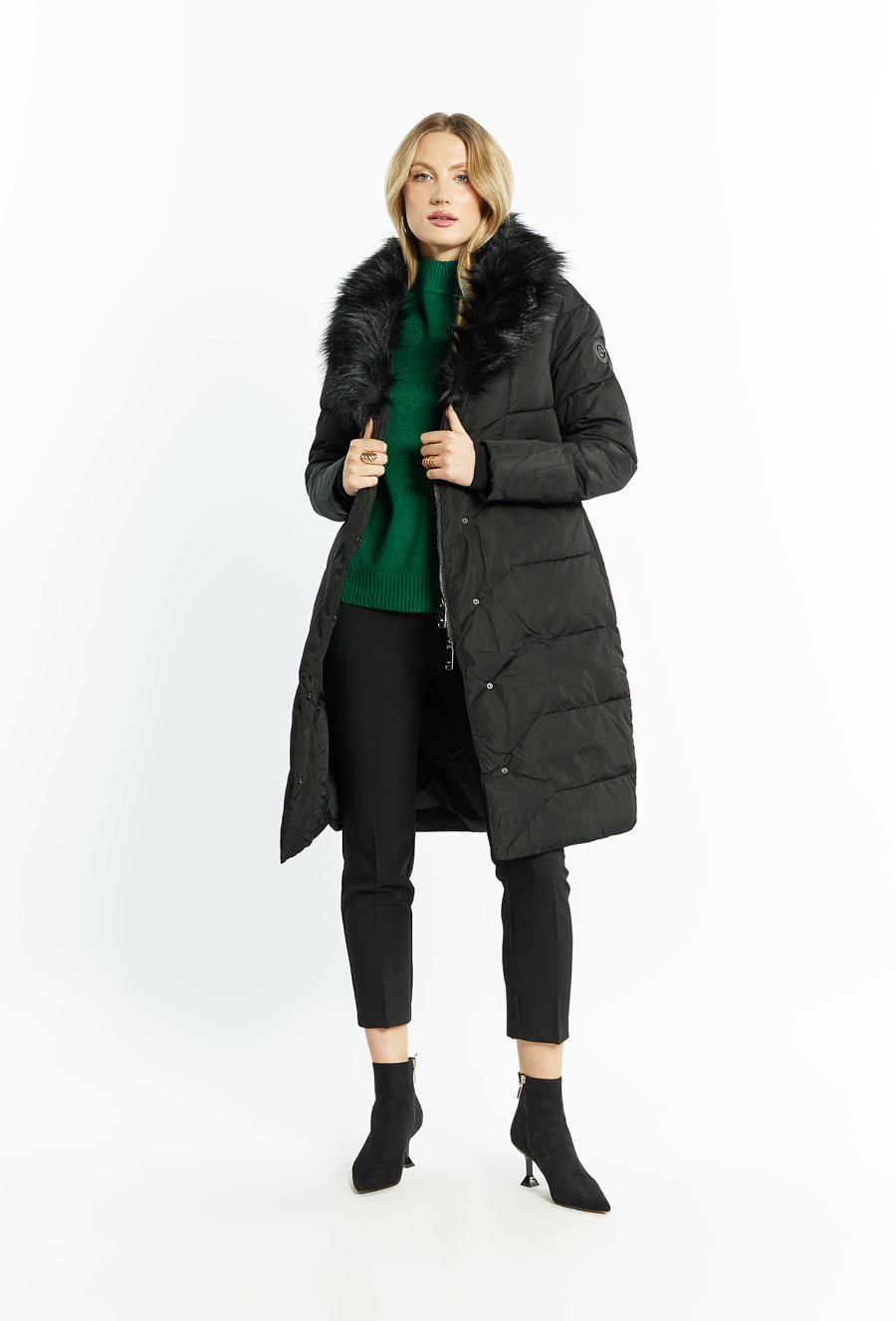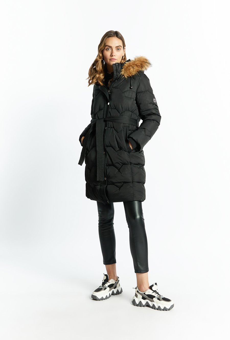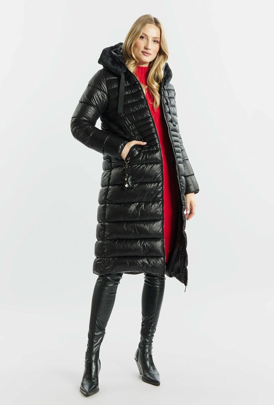 Pikowany płaszcz z odpinanym futerkiem