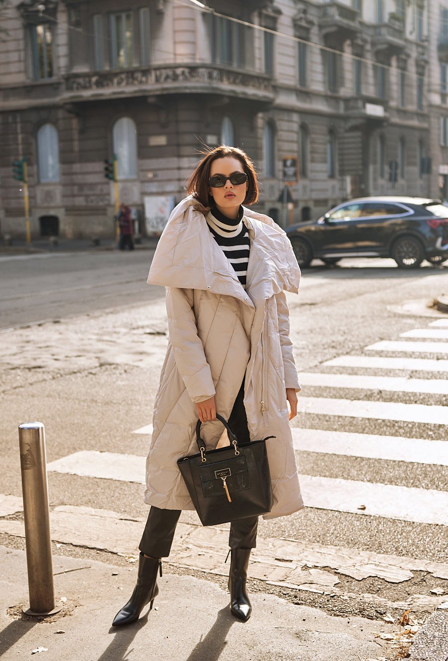 Pikowany płaszcz damski