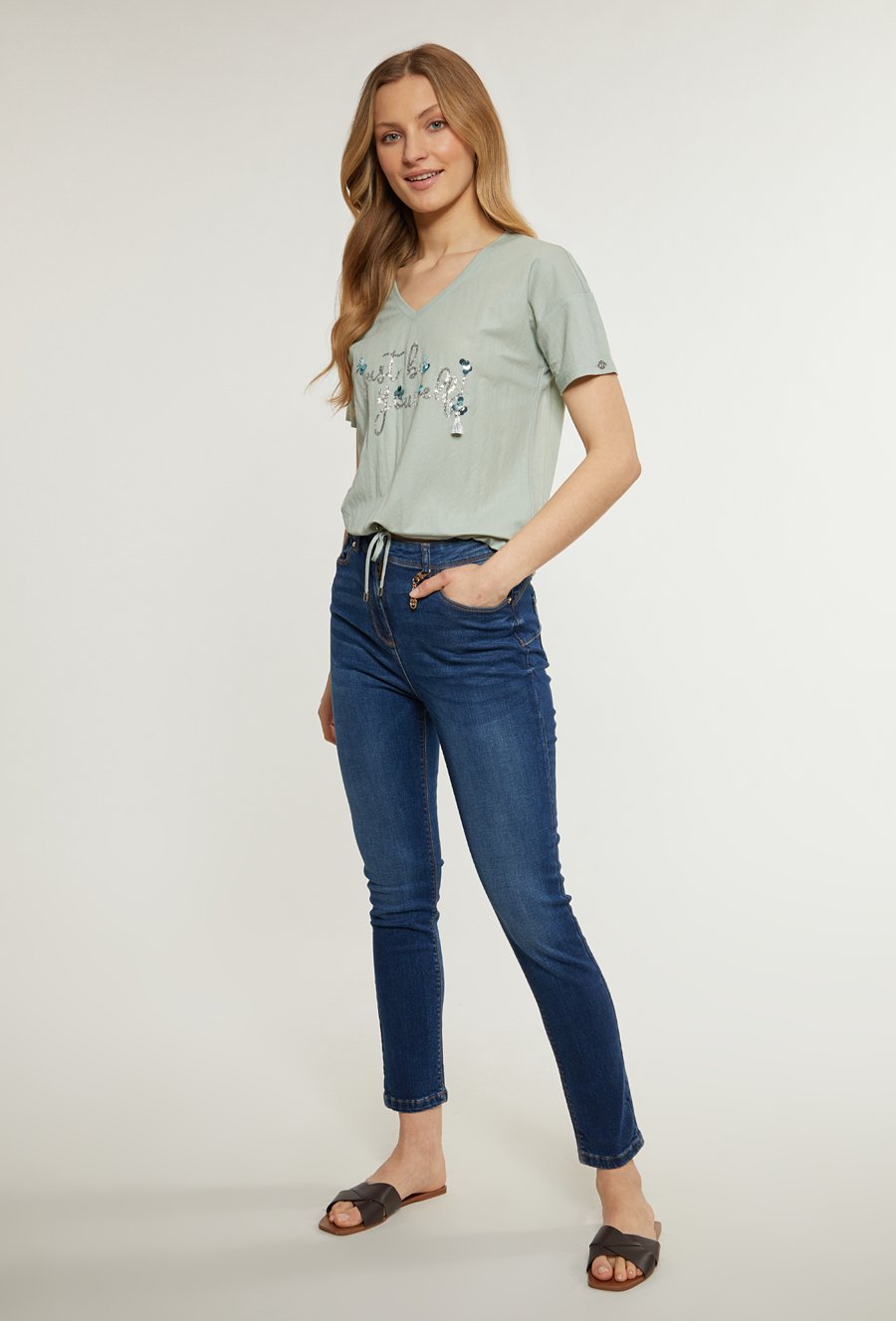 Jeansy damskie z dżetami