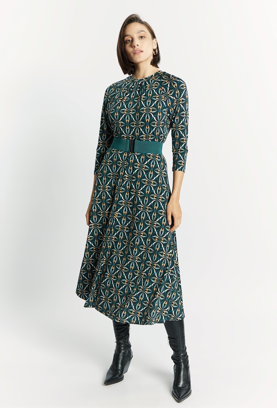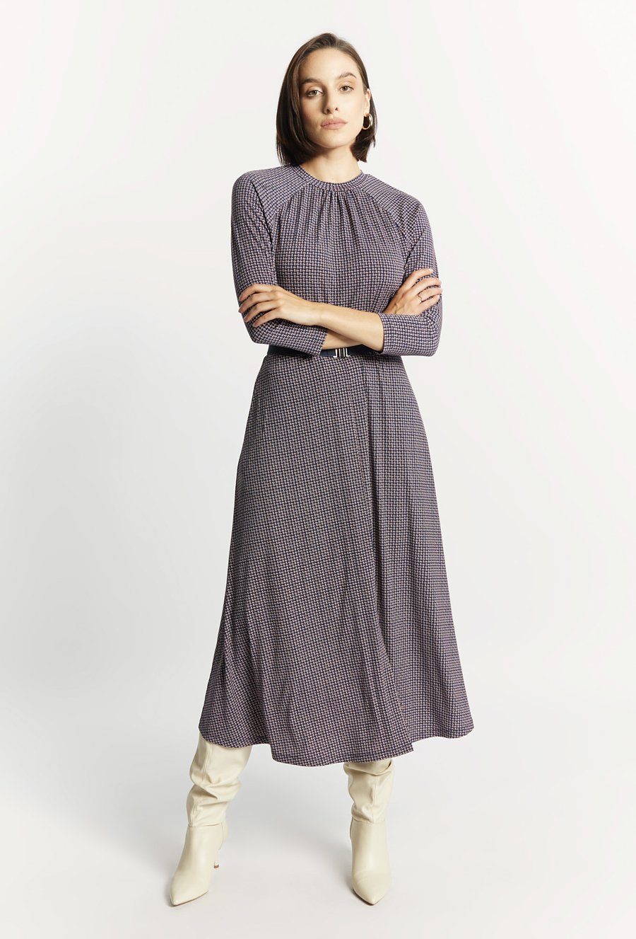 Sukienka midi z geometrycznym wzorem