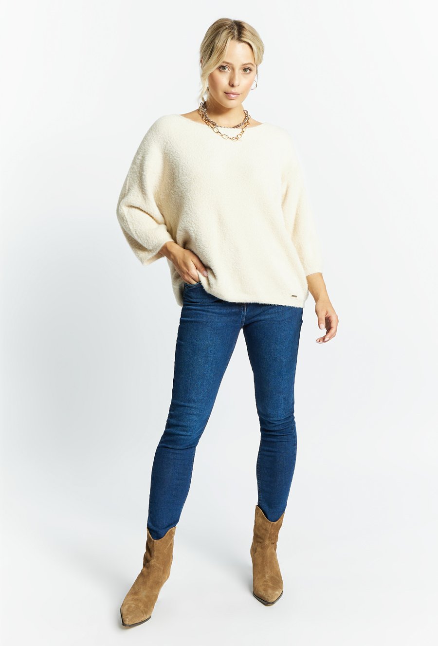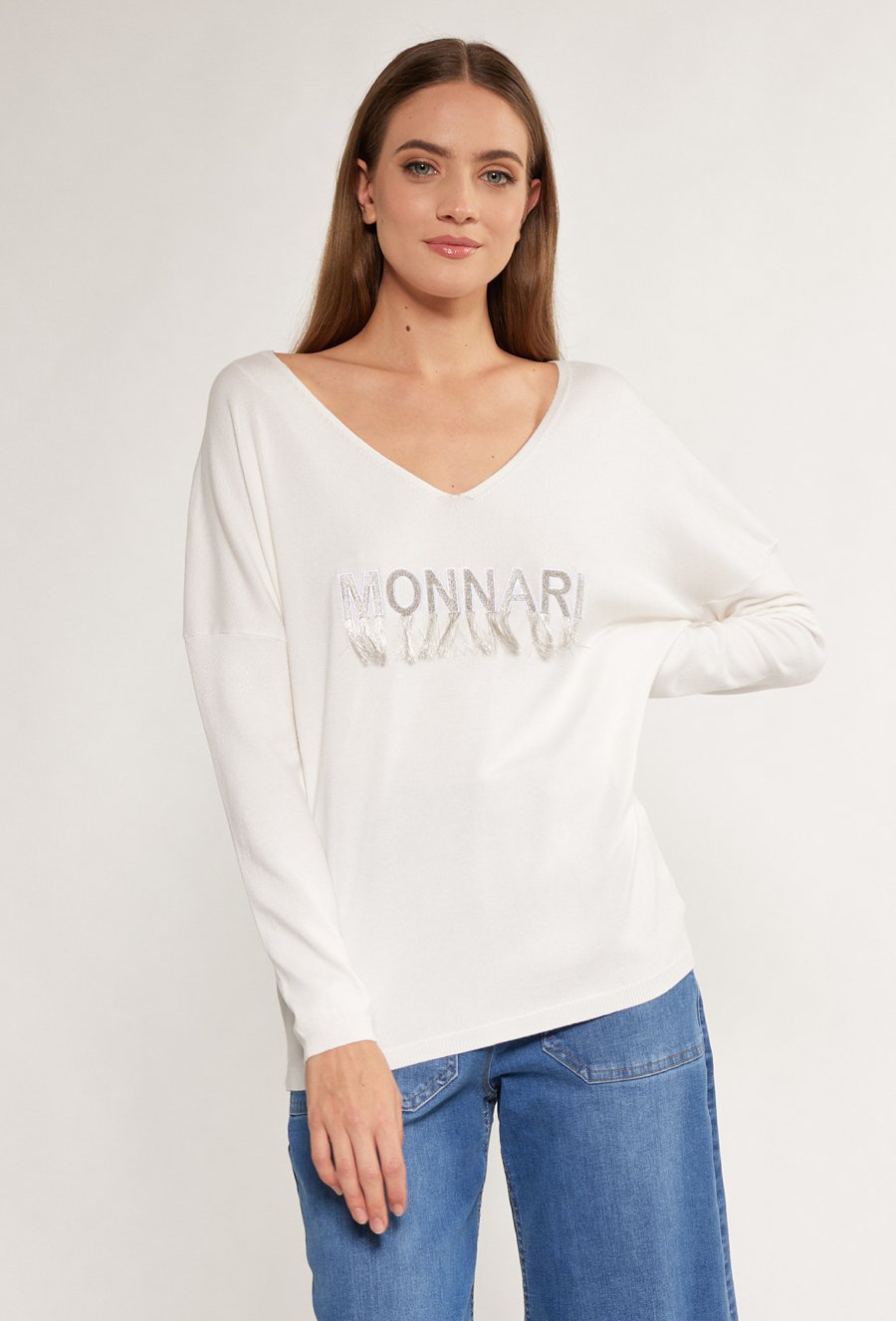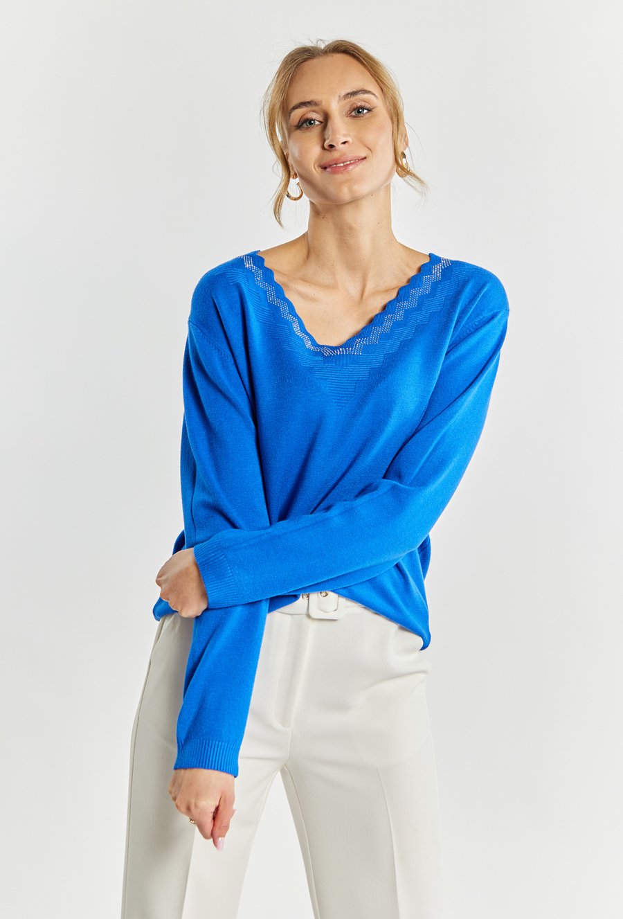 Sweter damski z dżetowym dekoltem
