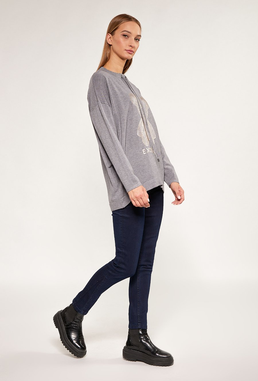 Sweter damski z ozdobnym napisem